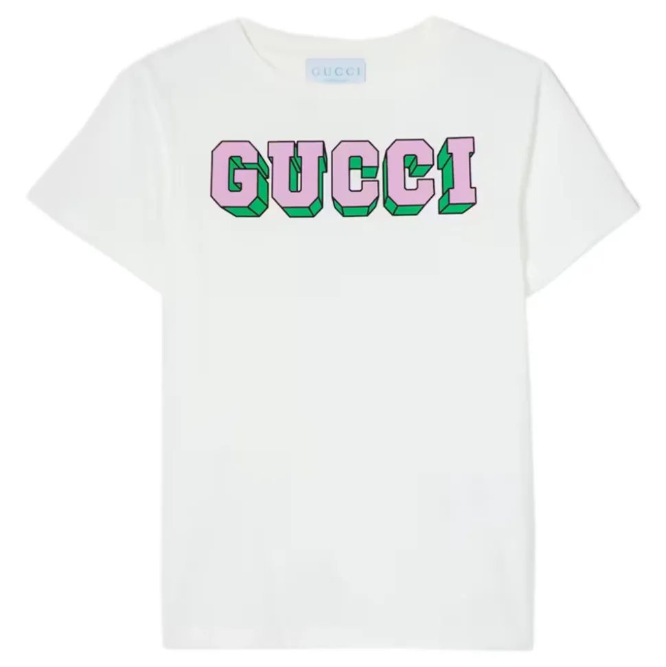 Het Gucci katoenen jersey T-shirt met ronde hals combineert zachte katoenen jersey met een kenmerkende print voor een nette, alledaagse look. Ontworpen met een ronde hals en korte mouwen, past het bij casual garderobes en gelaagde outfits. Belangrijkste kenmerken: Wit | Katoenen jersey | Ronde hals | Korte mouwen | Geribbelde boorden | Gucci print | Afmetingen & pasvorm: Klassieke pasvorm | Samenstelling & onderhoud: 100% katoen