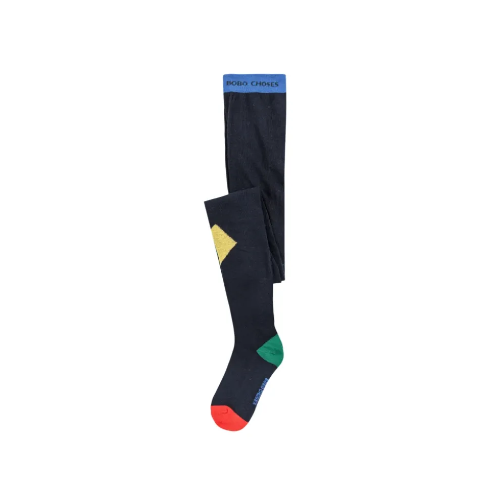 KATOENEN PANTY’S van Bobo Choses bieden een unieke mix van klassieke elegantie en kinderlijke creativiteit. De marineblauwe fijngebreide stof zorgt voor uitzonderlijke zachtheid en comfort gedurende de hele dag, terwijl de elastische tailleband zorgt voor een perfecte pasvorm bij de silhouet van je kind. Het opvallende, kenmerkende patroon bevat kleurrijke vormen geïnspireerd op speelkaarten – levendige rode harten, groene schoppen, gele ruiten en roze klaveren – waardoor de panty’s een origineel, tijdloos karakter krijgen. Contrasterende details, zoals groene hielen en rode teentips, benadrukken de uniekheid van het product. De herhaalde “BOBO CHOSES” inscriptie op de blauwe tailleband getuigt van de kwaliteit. WAAROM DIT PRODUCT KIEZEN? * Exclusief ontwerp dat opvalt tussen kinderaccessoires * Natuurlijk, zacht materiaal voor comfort en veiligheid * Originele details – contrasterende kleuren en subtiel logo * Geïnspireerd door de creatieve wereld van Bobo Choses * Zorgvuldig vakmanschap met aandacht voor elk detail