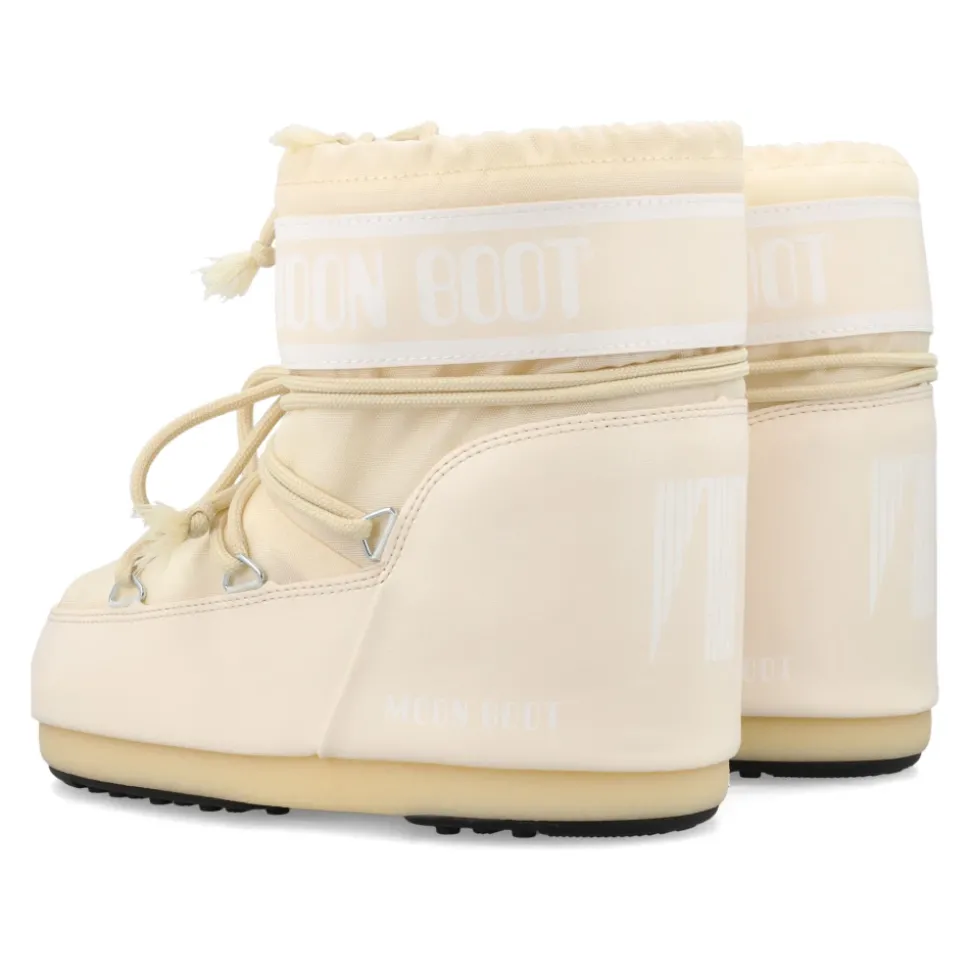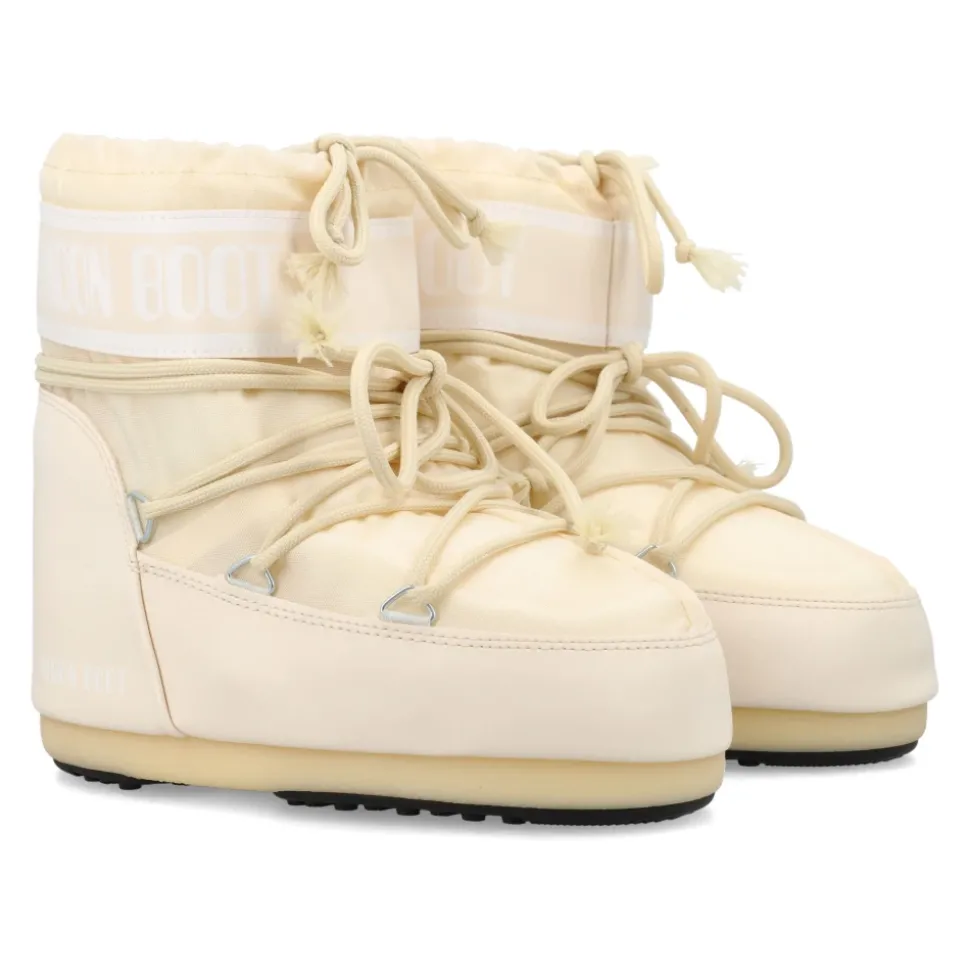 Stap in stijl met de Kid Icon enkellaarsjes van Moon Boot, met een strak monochroom design en een veilige pasvorm dankzij de gekruiste veters en een trekkoord aan de bovenkant. Belangrijkste kenmerken: Crème | Beige | Rubber | Waterafstotend | Slip-on design | Veilige pasvorm met trekkoord | Logo-print paneel | Gekruiste buisvormige veters | Afmetingen en pasvorm: Normale pasvorm | Samenstelling en onderhoud: 100% Rubber | PVC hielstuk | Thermoplastische tussenzool | Schoonvegen met een vochtige doek