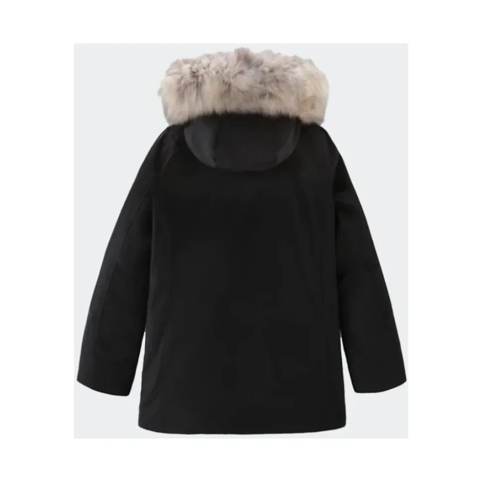 Woolrich donsjas van Ramar-stof met Teflon-coating voor water- en windbestendigheid, ontworpen voor bescherming tegen koud weer met een afneembare bontinzet in de capuchon. Belangrijkste kenmerken: Zwart | Nero | Polyester | Waterafstotend (Teflon-coating) | Windbestendig | RDS-gecertificeerd dons | Verborgen ritssluiting met drukknoopsluiting | Afneembare bontinzet | Interne geribbelde manchetten | Beschermende capuchon met afneembare bontinzet | Diagonale klepzakken | Zijlabel | Samenstelling & verzorging: Vulling: eendendons 70/30 | Buitenlaag: polyester 100% | Bont: geit 100% | Machinewas op 30°C; niet strijken; niet wassen met lichte kleuren; geen bleekmiddel gebruiken.