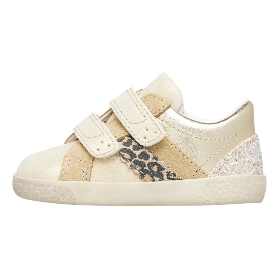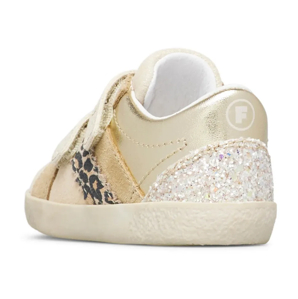 Falcotto Kilde VL. sneakers combineren een bovenwerk van leer en suède met een veilige riemsluiting voor gemakkelijk aan- en uittrekken. Ze combineren een zachte leren binnenzool en voering met een rubberen zool voor comfortabel en stabiel dragen tijdens het dagelijkse spel. Belangrijkste kenmerken: Geel | Goud | Leer en suède | Gripvaste rubberen zool | Riemsluiting | Leren binnenzool en voering | Bovenwerk van leer en suède | Samenstelling & verzorging: Leer | Suède | Rubber