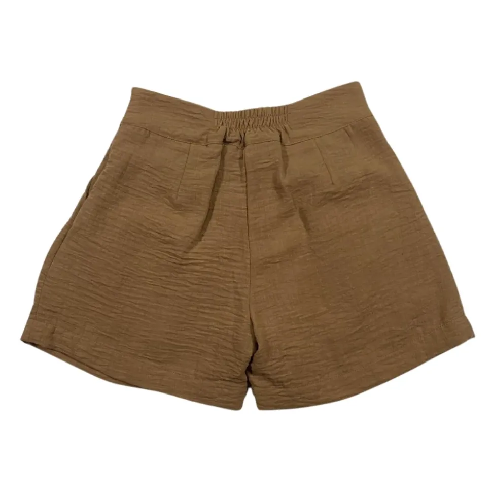 Manila Grace Kids beige shorts voor meisjes, met elastische tailleband, twee zijzakken, metalen logo-applicatie, zijrits en losse pasvorm. Gemaakt van 30% katoen en 70% polyester met 100% polyester voering.