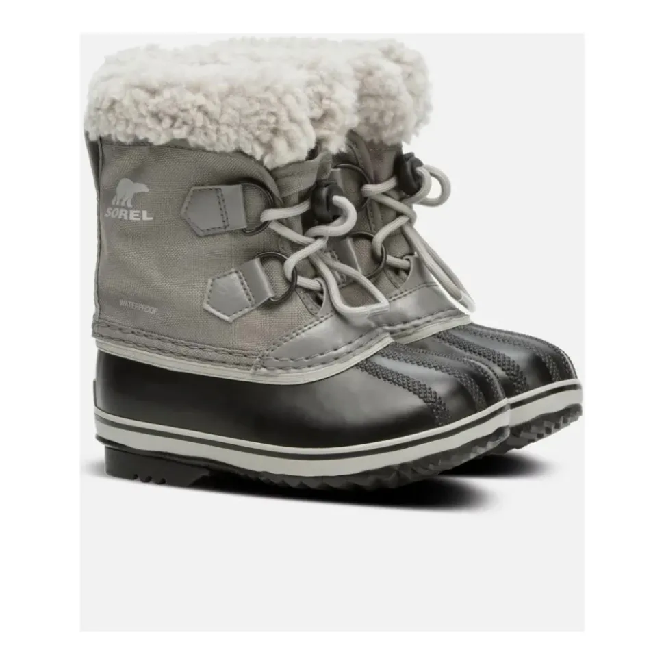 Deze Sorel kinderlaarzen hebben een stoffen bovenwerk, rubberen zool, textielen voering en een ronde neus. Gemaakt in Vietnam, ze worden geleverd met een schoenendoos en hebben een trekkoordsluiting.