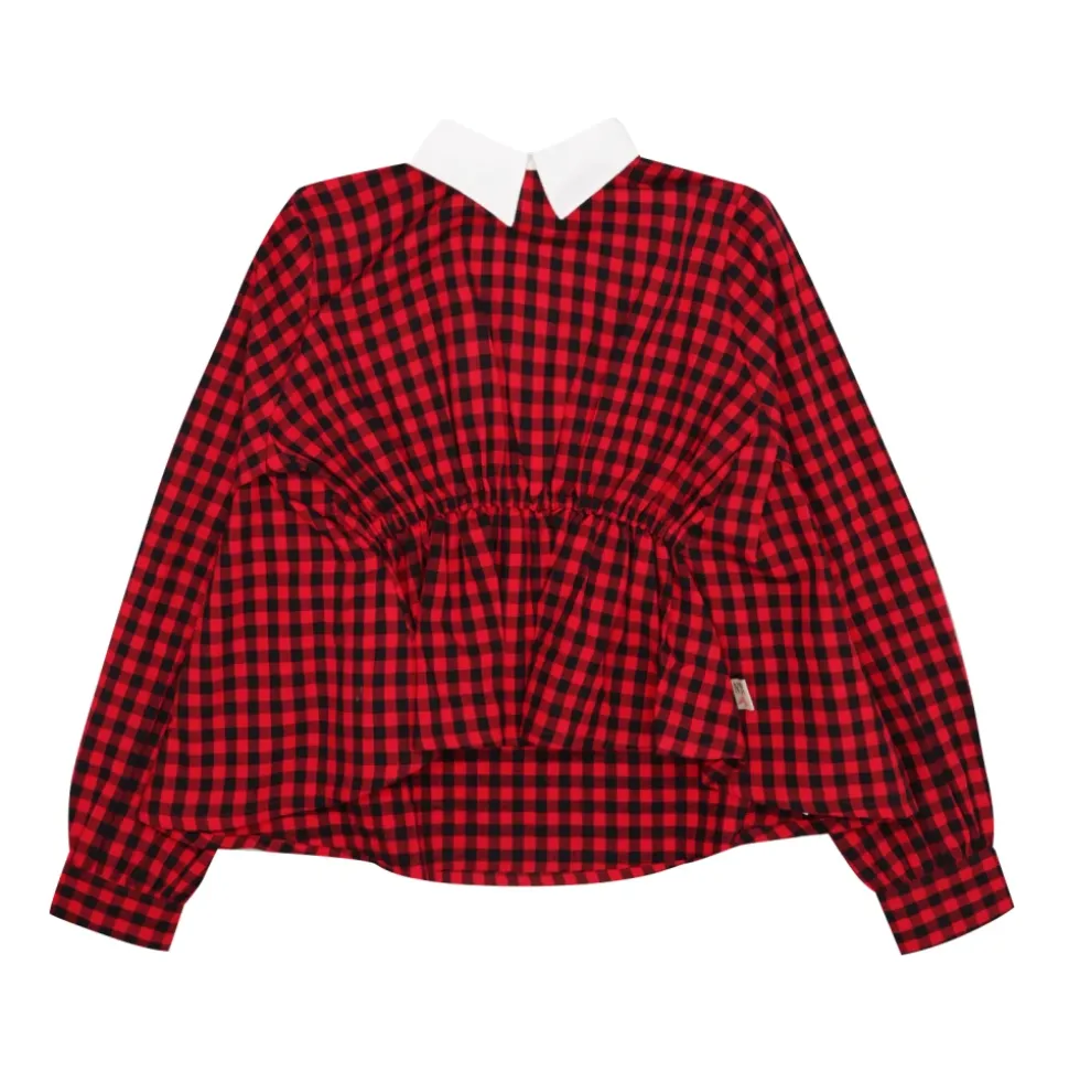 Shop de stijlvolle N21 Kids rode en zwarte katoenen blouse met witte kraag en elastische tailleband. Perfect voor de garderobe van jouw kleine fashionista. Bekijk nu onze collectie!
