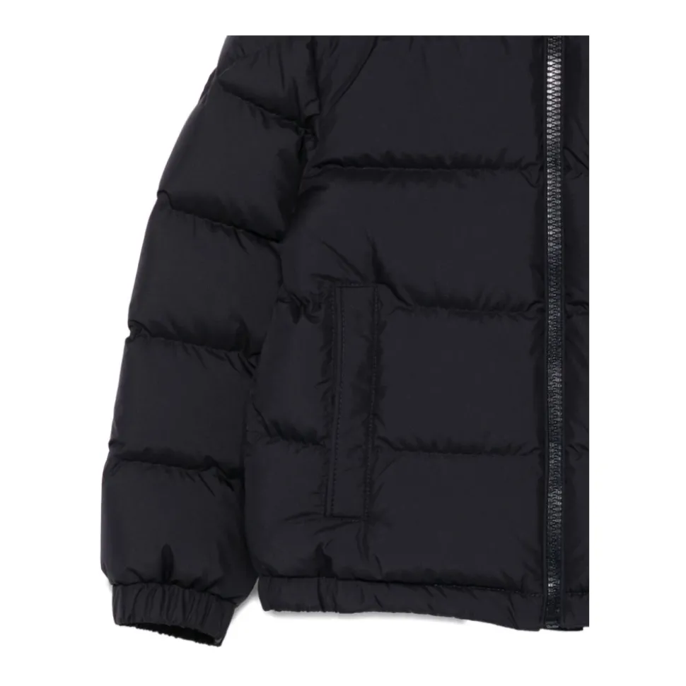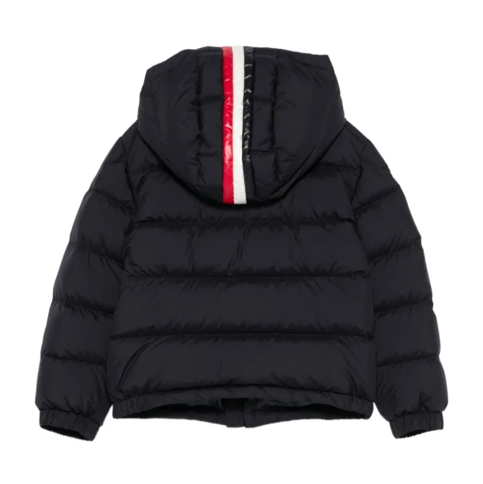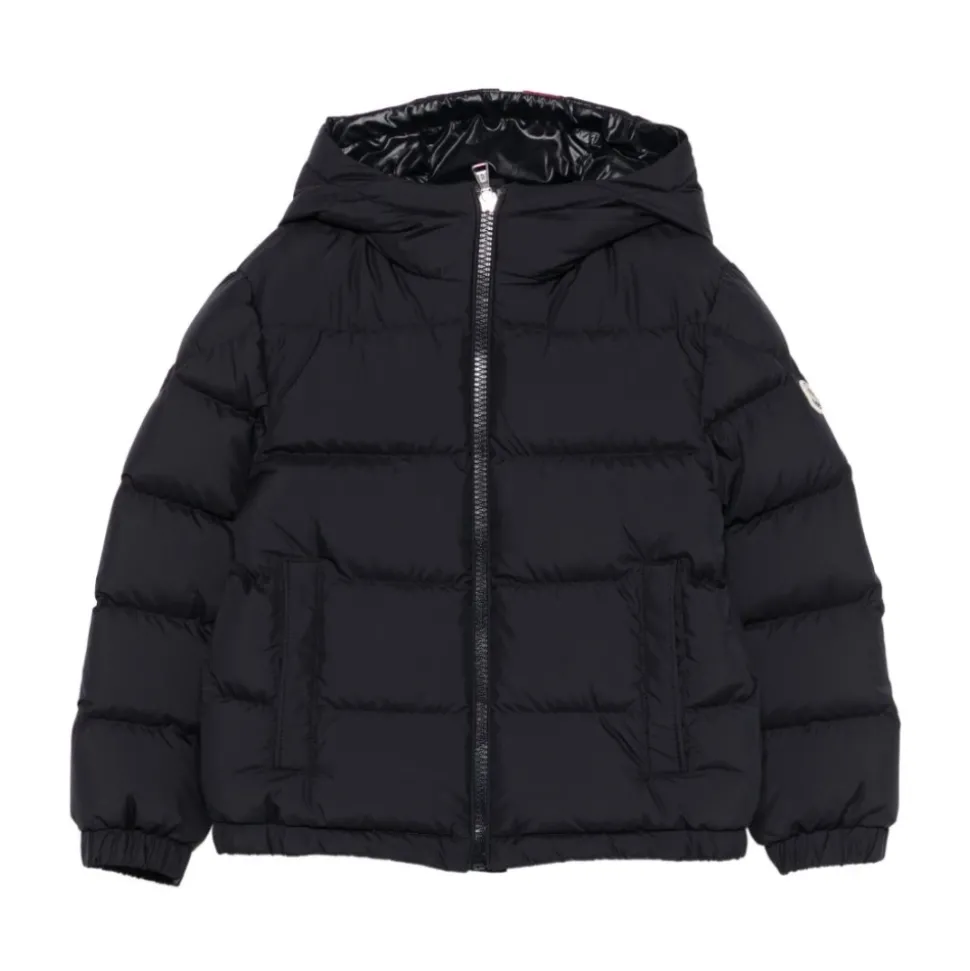Blijf warm en stijlvol deze winter met de Moncler Enfant gewatteerde jas met capuchon voor jongens, geselecteerd door Cenere GB vanwege zijn hoge stijlniveau.