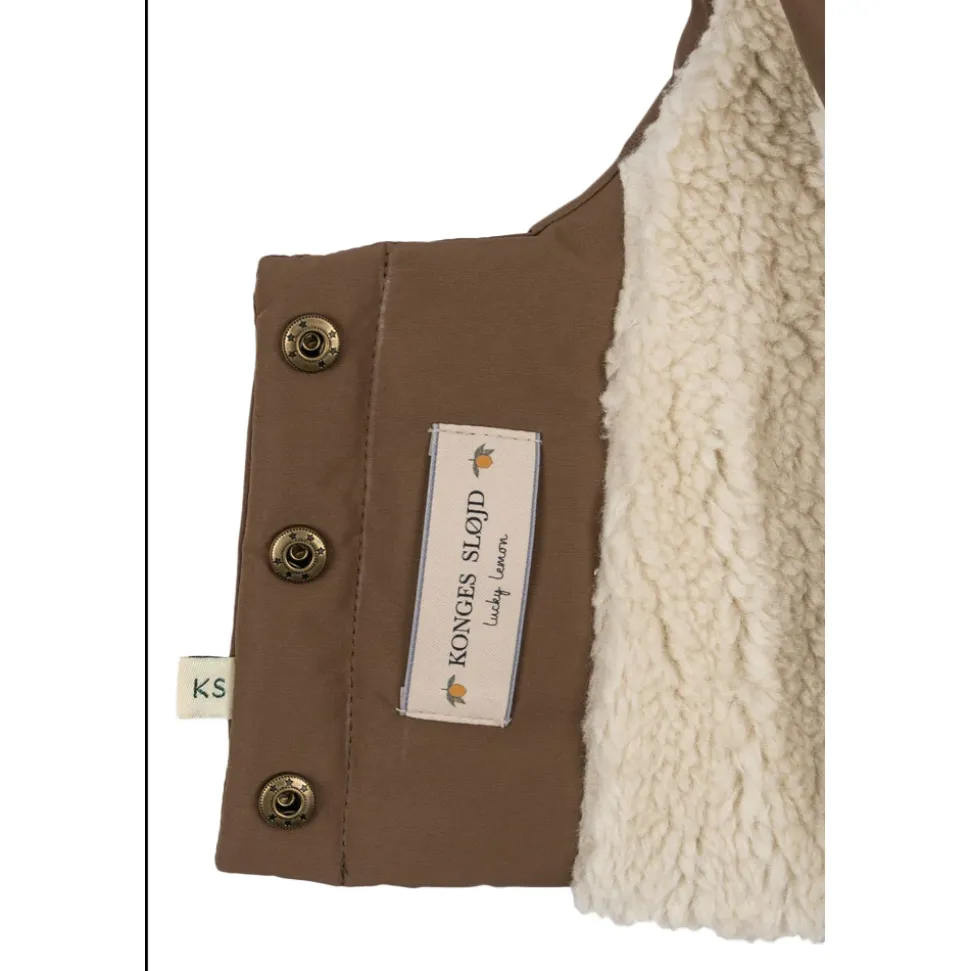 STROLLER GLOVES van Konges Sløjd vertegenwoordigen het toppunt van luxe en functionaliteit tijdens alledaagse wandelingen. De verfijnde bruine tint vormt een harmonieuze aanvulling op de zorgvuldig vormgegeven vorm van de rechthoekige handschoenen, afgerond aan de bovenkant en precies passend voor de handvatten van een kinderwagen. De buitenste laag, gemaakt van glad, technisch materiaal, weerstaat moeiteloos vocht, terwijl de pluche, romige, synthetische bont aan de binnenkant uitzonderlijke warmte en zachtheid biedt, zelfs op kille dagen. Een elegant accent in de vorm van een subtiel citroen- en blad borduursel – een kenmerk van Konges Sløjd ontwerpen – benadrukt de originaliteit van het product. Het interieur is versierd met een ingenaaid label met de naam van de ontwerper en een delicaat citroengrafiek, als garantie van authenticiteit. WAAROM DIT PRODUCT KOPEN? * Een uitzonderlijke combinatie van elegantie en gebruikerscomfort * Weerstand tegen ongunstige weersomstandigheden * Zorgvuldig geselecteerde, aangename materialen * Uniek ontwerp dat opvalt op de markt * De handtekening van het gerenommeerde Deense merk Konges Sløjd