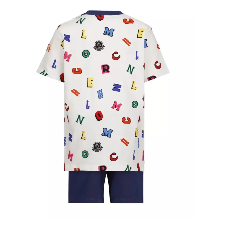 Upgrade de stijl van je kind met deze Moncler Kids set, gemaakt van hoogwaardig katoen. Het witte t-shirt heeft een kleurrijke print, ronde halslijn en drukknoopsluiting op de linkerschouder. De marineblauwe shorts met elastische tailleband zijn met oog voor detail vervaardigd. Stof: 100% katoen.