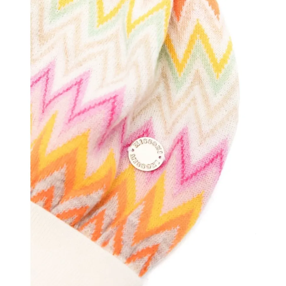 Voeg een vleugje kleur toe aan de outfit van je kleine meisje met deze Missoni Kids omslagmuts. Gemaakt van gebreide wol met een kleurrijk zigzagpatroon overal, deze muts heeft een speelse pompon en logo-applicatie. Verkrijgbaar in twee maten: Maat II (M) – 53 cm en Maat III (L) – 56 cm.