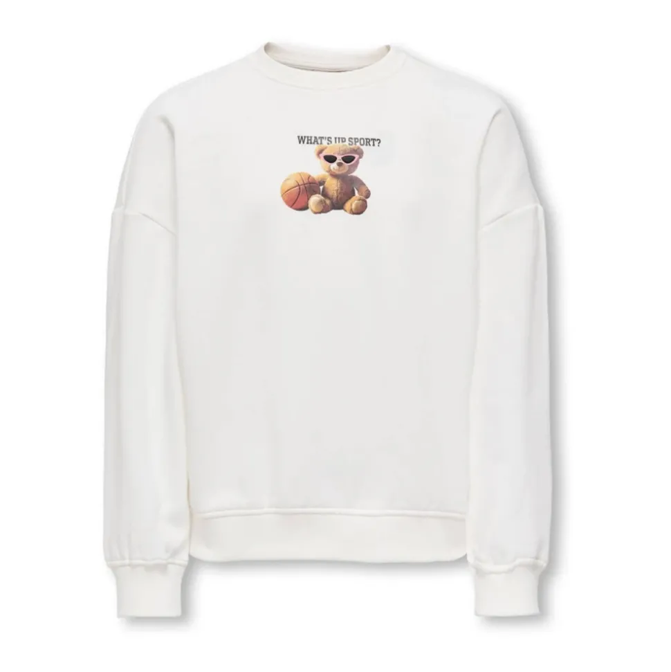 ONLY KOGBILA L/S OVZ BEAR O-NECK SWT NOOS is een sweatshirt met lange mouwen en een ronde hals, voorzien van een berenmotief, ontworpen voor casual dagelijks gebruik. Belangrijkste kenmerken: Beige | Ecru | Ronde hals | Lange mouw | Sweatshirt stijl | Berenmotief