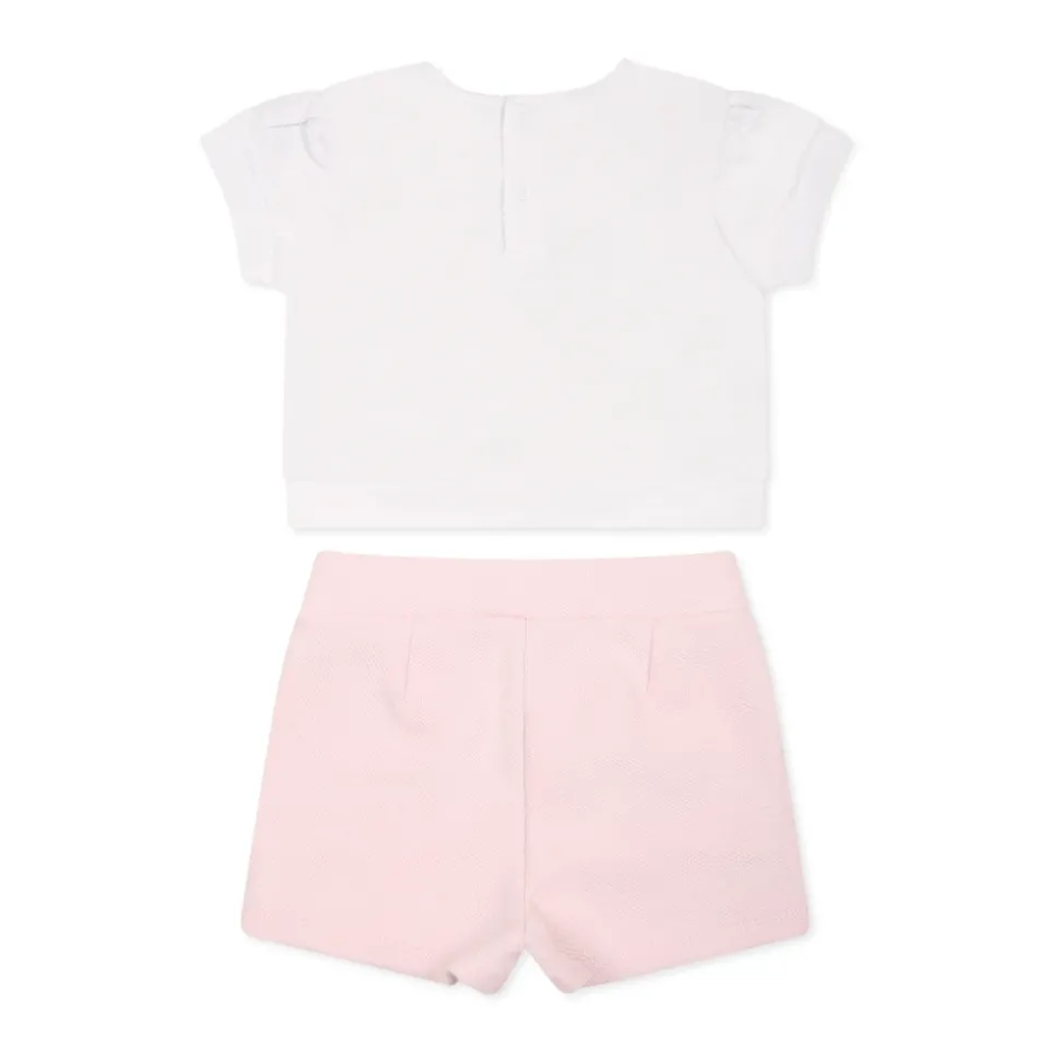 Ontdek de Karl Lagerfeld Korte Sportpakken, een veelzijdig multicolor ensemble, perfect voor actieve dagen. Deze set bestaat uit een stijlvol wit katoenen T-shirt met een speelse Choupette- en logo-print, gecombineerd met comfortabele roze shorts. Belangrijkste kenmerken: Multicolor | Katoen | Drukknoopsluiting op de rug | Elastische tailleband | Geribbelde ronde hals | Korte mouwen | Lurex logo op de zijkanten | Samenstelling en onderhoud: 100% Katoen | Machinewas op 30°C