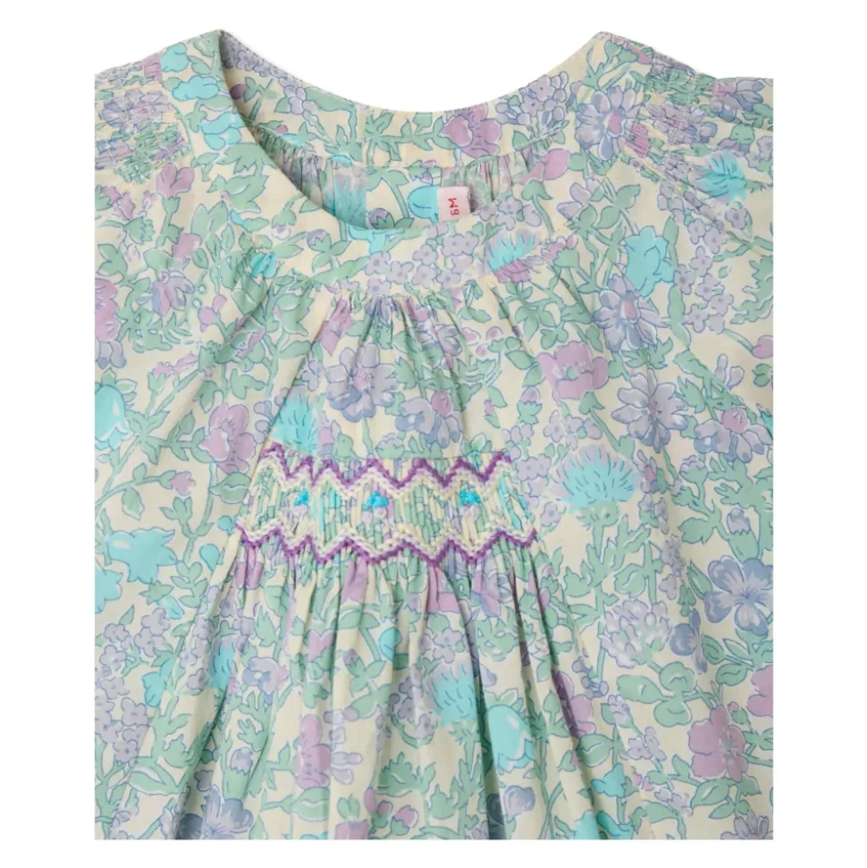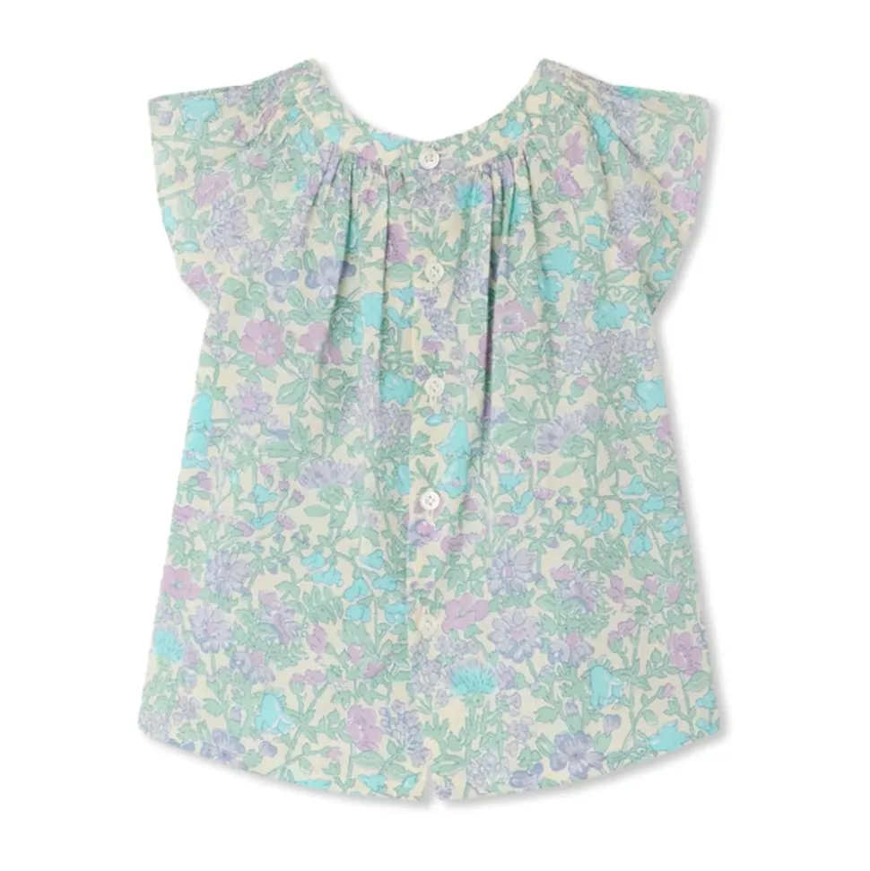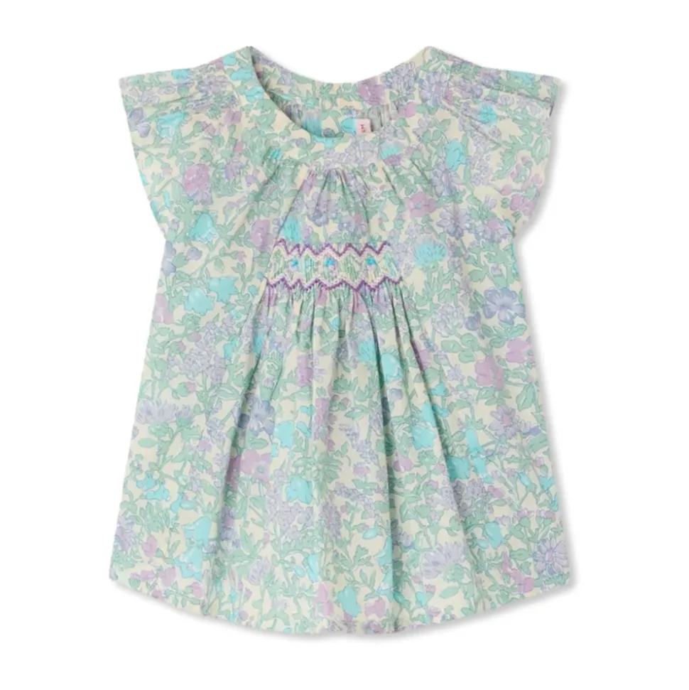 De Bonpoint Laurie Top combineert een lichtgewicht katoenen constructie met een los trapeze silhouet en kenmerkend smockborduurwerk. Het ontwerp benadrukt comfort en gemakkelijk aankleden met een delicate bloemenprint en knoopsluiting aan de achterkant. Belangrijkste kenmerken: Blauw | Katoen | Lichtgewicht | Zacht handgevoel | Zacht voor de gevoelige huid | Volledige knoopsluiting aan de achterkant | Gemakkelijk aan te trekken | Trapeze silhouet | Licht uitlopende zoom | Volantmouwen | Smock voorkant met zigzagborduurwerk | Kleine bloemenprint over de hele stof | Decoratieve knopen aan de achterkant | Afmetingen en pasvorm: Losse pasvorm | Trapeze silhouet | Samenstelling en onderhoud: Katoen