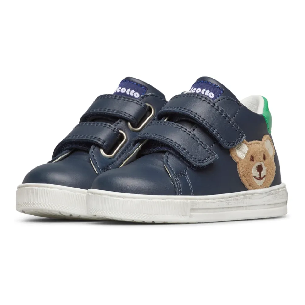 These leather sneakers are designed to accompany the little ones in every daily adventure, combining comfort and style. The strap closure allows for a quick and secure fit, ideal for children on the go. Leather insole and lining ensure freshness and well-being, while the rubber sole ensures support at every step.