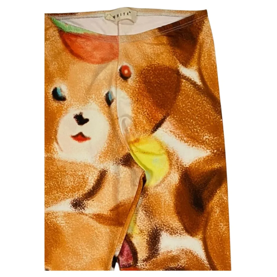Leggings vervaardigd in Italië van zachte koperkleurige stof met een veelkleurig dessin en een elastische tailleband voor gemakkelijk dragen. Belangrijkste kenmerken: Multicolor | Koper | Wit | Polyester | Zacht aanvoelende stof | Stretchstof | Elastische tailleband | Overal contrasterend veelkleurig dessin | Afmetingen en pasvorm: Aansluitend | Samenstelling en verzorging: 95% polyester | 5% elastaan