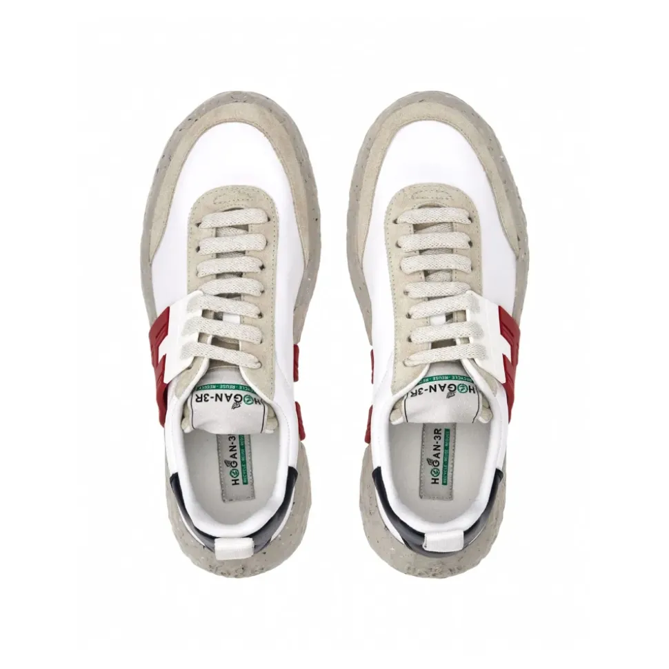 Ontdek de Hogan-3R Leren Sneakers, ontworpen voor stijl en comfort met een strak leren bovenwerk en suède inzetstukken. Belangrijkste kenmerken: Wit | Rood | Blauw | Leer | Airtex gevoerde binnenzool | Rubber schuine H-logo | Grosgrain details | Afmetingen en pasvorm: Normale pasvorm | Samenstelling en onderhoud: Leer | Suède | Schoonvegen met een vochtige doek.