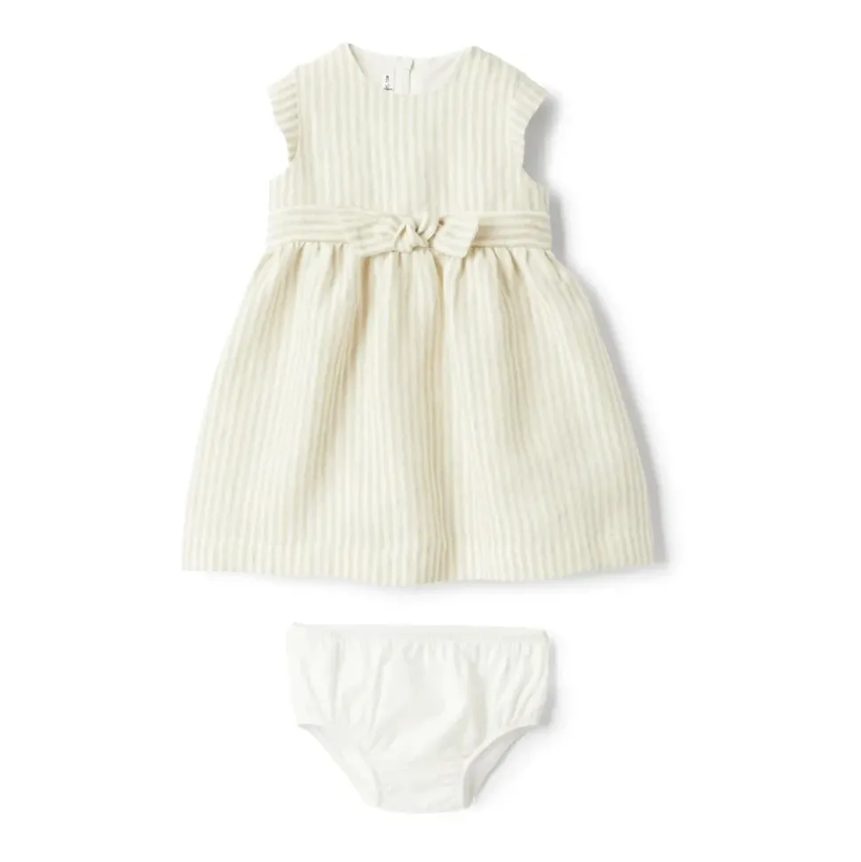 Kleed je kleine meisje in stijl met deze IL GUFO jurk met korte mouwen gemaakt van lichtgewicht 100% linnen. Perfect voor informele uitstapjes, deze jurk combineert elegantie met bewegingsvrijheid.