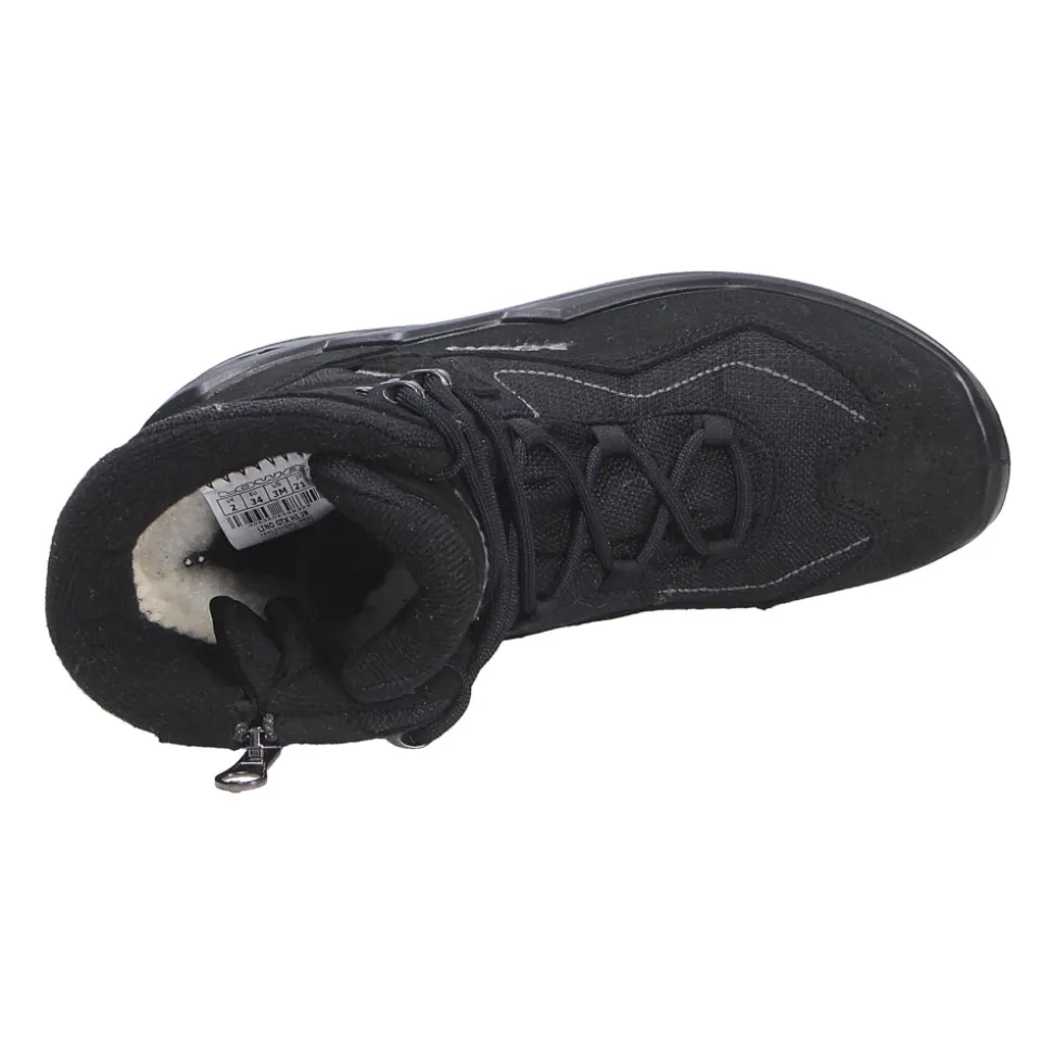De Lowa LINO GTX HI JR is een hoge winterlaars, gebouwd voor natte, koude omstandigheden, die een GORE-TEX membraan combineert voor betrouwbare bescherming tegen het weer met een flexibele, ondersteunende zool voor actief gebruik buitenshuis. Belangrijkste kenmerken: Zwart | Textiel | Waterdicht en winddicht (GORE-TEX membraan) | Ademend | Slijtvaste, gripvaste rubberen buitenzool | Uitneembare binnenzool voor aangepaste inlegzolen | Klassieke vetersluiting met zijrits voor snelle instap | Hoge laars silhouet | Ronde neus | Platte hak | Afmetingen & pasvorm: WMS breedte: M (medium / normale breedte) | Normale maatvoering | Medium schachtbreedte – past op normale kuitomtrek | Samenstelling & onderhoud: Bovenwerk: Textiel | Voering: Wol | Membraan: GORE-TEX | Binnenzool: Uitneembare binnenzool | Buitenzool: Slijtvast rubber | Afnemen met een vochtige doek en aan de lucht laten drogen. Verwijder de inlegzolen voor het drogen. Niet in de machine wassen; volg de onderhoudsinstructies van de fabrikant.