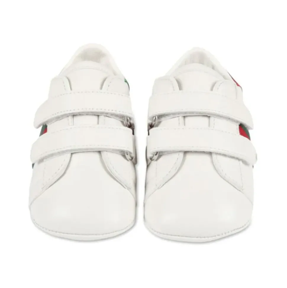 Gucci kindersneakers met klittenbandsluiting aan de voorkant, ronde neus en platte leren zool. Buitenkant: 100% leer Zool: 100% leer Voering: 100% leer. Productcode: 500852BKPT0.