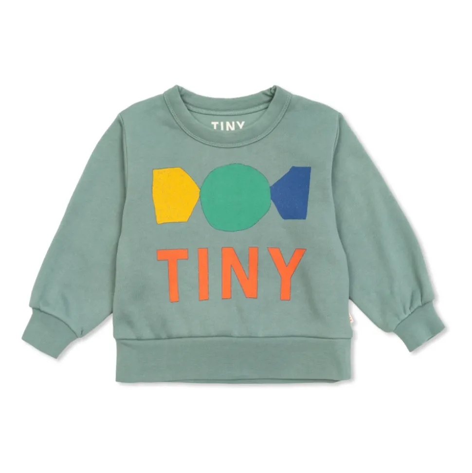 De Tiny Cottons Long Sleeve Sweatshirt combineert een zachte, licht geribbelde katoenen tricot met een opvallende, kleurrijke graphic voor dagelijks comfort en een speelse stijl. Belangrijkste kenmerken: Groen | Katoen | Zacht gevoel | | Elastische ribbels aan manchetten en zoom | Lange mouwen | Licht geribbelde textuur | Gestileerde snoep graphic print | Opvallende “TINY” inscriptie op de voorkant | Detail in de nek | Afmetingen & pasvorm: Regular fit | Verlaagde schouders | Samenstelling & onderhoud: Katoen
