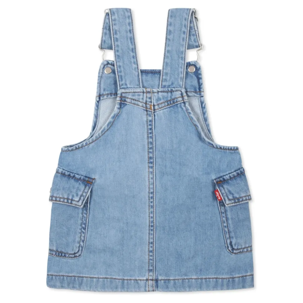 Kleur: DenimBeschrijving: Denim tuinbroek van katoen, met verstelbare schouderbanden, haken aan de voorkant en klepzakken aan de zijkanten. Het is versierd met een logopatch aan de ene kant.Details: 100% katoen. Machinewas op 30°C.