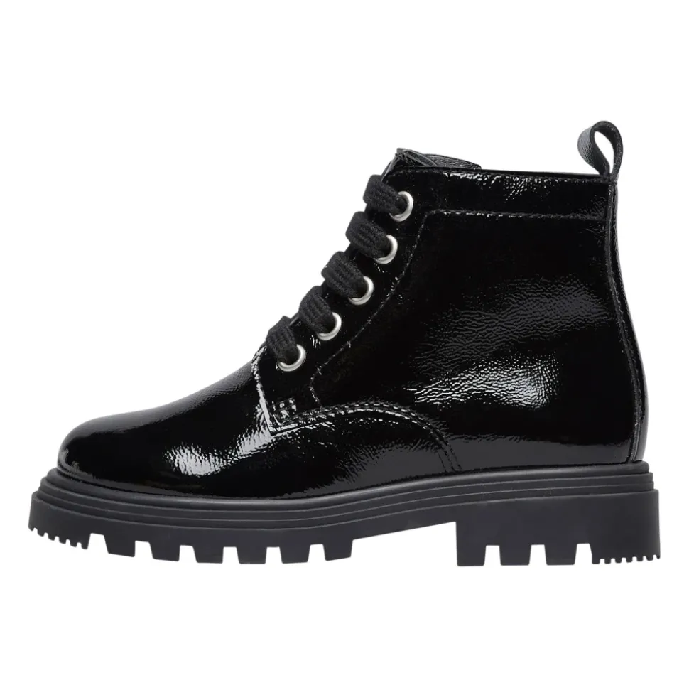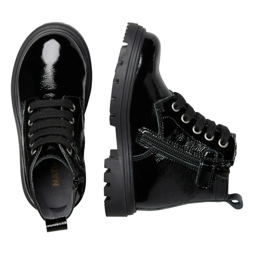 De Naturino MAKKI ZIP Enkellaars is een enkellaars van lakleer, ontworpen voor dagelijks gebruik. Het combineert een glanzend bovenwerk met een rubberen profielzool en een interne rits voor gemakkelijk aan- en uittrekken. Belangrijkste kenmerken: Zwart | Lakleer | Rubberen profielzool voor grip | Vetersluiting | Interne ritssluiting | Leren voering en binnenzool | Amphibian-stijl silhouet | Enkelhoogte | Samenstelling & verzorging: Lakleer | Leren voering | Leren binnenzool | Rubberen zool