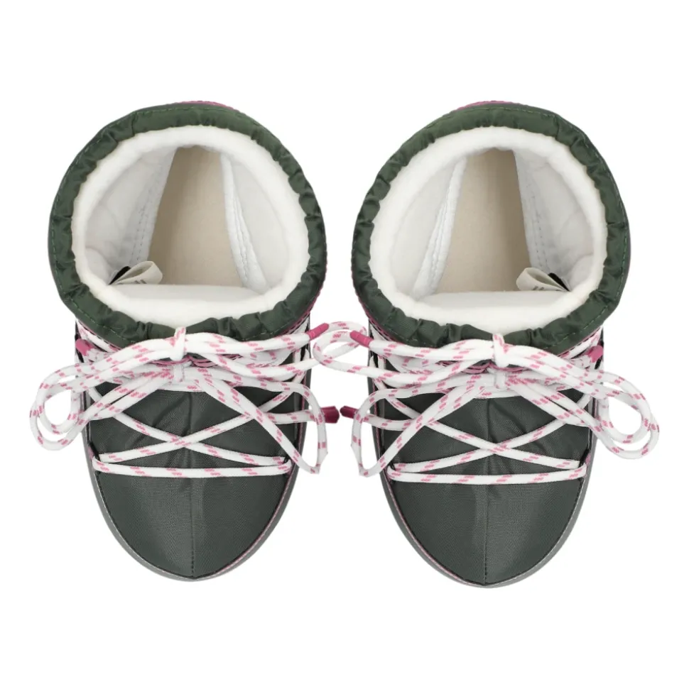 De Moon Boot MB Icon Low Space Racing Snow Boots combineren een compact, afgerond silhouet met een beschermende winterconstructie, en bieden betrouwbare warmte en grip voor koude, besneeuwde omstandigheden. Belangrijkste kenmerken: Bosgroen | Zilver | Roze | Polyamide | Waterafstotend bovenwerk | Geïsoleerde voering voor warmte | Thermoplastisch rubberen profiel voor grip en duurzaamheid | Slip-on ontwerp met trekkoord aan de bovenkant | Gekruiste buisvormige veters | Adaptieve multisize schuimvoering | Afgeronde neus | Laag bovenwerk silhouet | Opvallende kleurblokkering met een contrasterende logoband | Hielkap en afwerking met merklogo | Zilverkleurige metalen oogjes | Witte veters met roze details | Afmetingen & pasvorm: Adaptieve schuimvoering die zich na een paar uur dragen naar de voet vormt. | Aanbeveling: een maat groter bestellen voor de beste pasvorm. | Samenstelling & onderhoud: Bovenwerk: 62% polyamide, 33% PVC, 5% polyurethaan | Voering: 92% polyester, 8% polyurethaan | Zool: 100% thermoplastisch rubber | Verwijder vuil met een zachte, droge borstel. Veeg vlekken weg met een zachte, vochtige doek en een mild reinigingsmiddel. Borstel de tussenzool en buitenzool met een mild reinigingsmiddel en water. Laat aan de lucht drogen bij kamertemperatuur en bewaar in een beschermende tas.