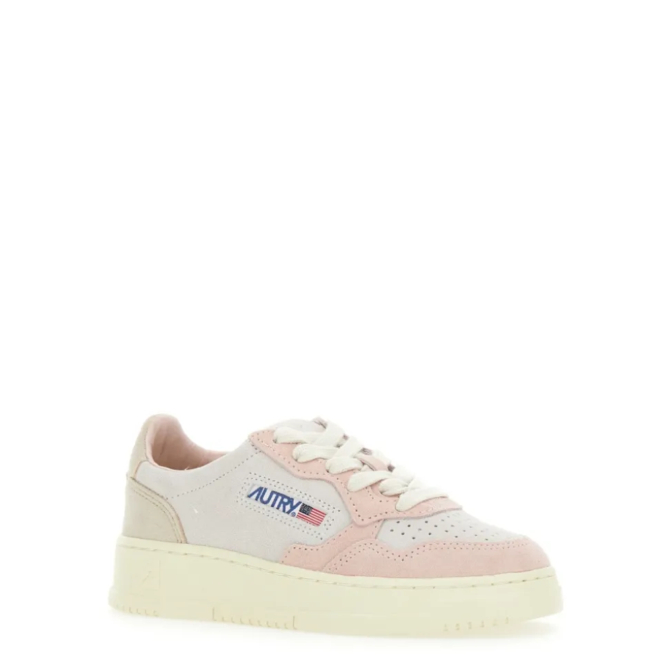 De Autry Medalist Lage Sneakers hebben een stijlvol roze en meerkleurig design met een logo patch, perfect om een vleugje kleur toe te voegen aan elke outfit. Belangrijkste kenmerken: Roze | Multicolor | Kalfsleer | Panelen design | Tonale stiksels | Logo patch op de tong | Geperforeerde neus | Logo patch aan de zijkant |