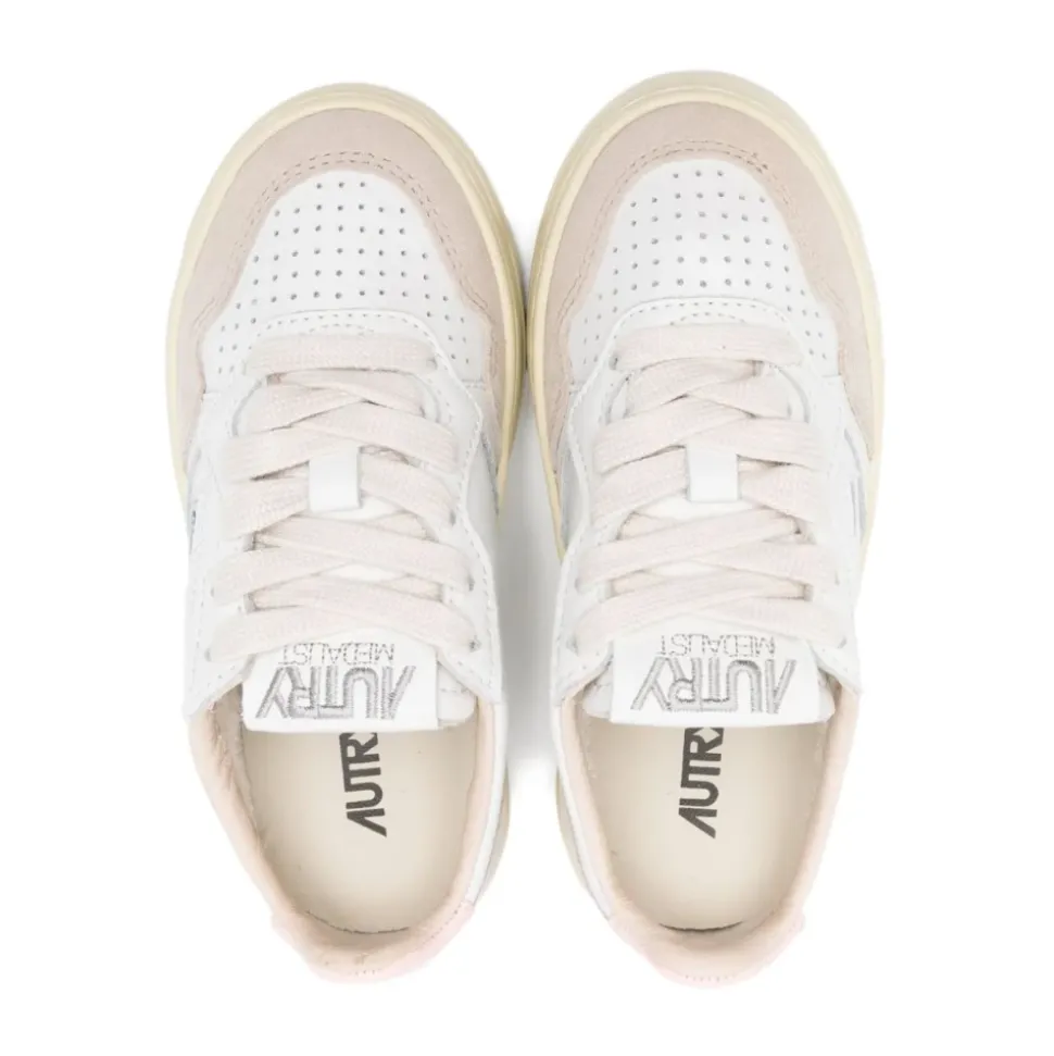 De Autry Medalist Low Sneakers combineren een vintage-geïnspireerde styling met een constructie van leer en suède voor dagelijks gebruik. Het lage silhouet valt op door de geperforeerde neus en contrasterende hieldetail. Belangrijkste kenmerken: Wit | Roze | Leer en suède | Geperforeerde neus voor ademend vermogen | Vetersluiting | Gewatteerde kraag | Leren binnenzool | Rubberen buitenzool | Geperforeerde neus | Logo label op de tong en hiel | Contrasterende hielstuk | Laag silhouet | Afmetingen & pasvorm: Zoolhoogte: 2,5–3,5 cm | Verhoogde binnenzool: 2 cm | Samenstelling & onderhoud: Bovenkant: Leer, suède | Voering: Leer, katoenfleece, nylon | Buitenzool: Rubber | Veeg schoon met een vochtige doek. Niet in de wasmachine wassen. Gebruik een geschikt leerverzorgingsproduct voor conditionering; vermijd langdurige blootstelling aan vocht.