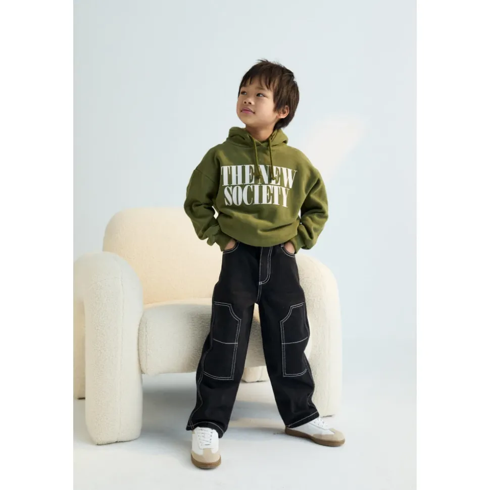 Deze hoodie heeft een gedurfd contrasterend The New Society-print dat een moderne, op streetwear geïnspireerde touch toevoegt. Gemaakt met een geborstelde afwerking aan zowel de binnen- als buitenkant, biedt het uitzonderlijke zachtheid en warmte voor de hele dag comfort. Ontworpen voor eenvoudig laagjes dragen en dagelijks gebruik, past perfect bij de bijpassende cargobroek voor een stijlvolle, gecoördineerde outfit. Ideaal voor informele uitstapjes, loungen of actieve dagen. Gemaakt in Portugal 100% katoen Kleurcollectie: Verborgen Bos Model: Hoogte 117 cm. Draagt maat 6Y.