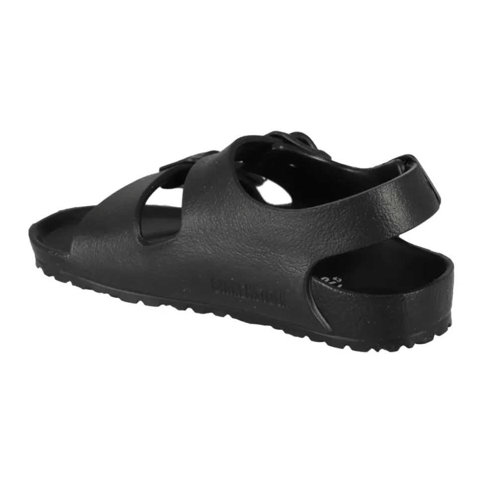 Ontdek de Milano Essentials Kids EVA Sandalen van Birkenstock, ontworpen voor ultiem comfort en stijl. Deze lichtgewicht sandalen zijn ideaal voor de hele dag spelen op het strand, in de tuin of bij het zwembad. Belangrijkste kenmerken: Zwart | EVA (Ethyleen Vinyl Acetaat) | Schokabsorberend | Waterdicht | Huidvriendelijk | Individueel verstelbare harsgesp | Hielband | Drie banden | Afmetingen en pasvorm: Normale pasvorm | Samenstelling en onderhoud: EVA (Ethyleen Vinyl Acetaat) | Schoonvegen met een vochtige doek