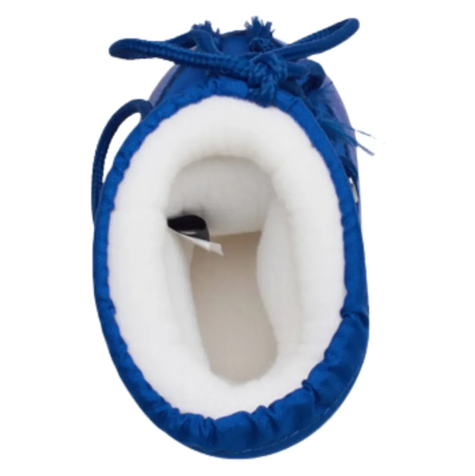 Bereid je kleintje voor op winterse avonturen met de Moon Boot Mini Icon Nylon Snowboots. Geïnspireerd door de maanlanding, zijn deze slip-on laarzen voorzien van een verstelbaar trekkoord voor een stevige pasvorm. Belangrijkste kenmerken: Blauw | Nylon | Waterafstotend | Isolerende vulling | Verstelbaar trekkoord | Slip-on ontwerp | Logoband | Gekruiste buisvormige veters | Zilverkleurige metalen oogjes | Afmetingen en pasvorm: Normale pasvorm | Samenstelling en onderhoud: 60% Nylon | 40% PVC | Voering: 92% Polyester | 8% Polyurethaan | Loopvlak: 100% Thermoplastisch rubber | Niet gespecificeerd