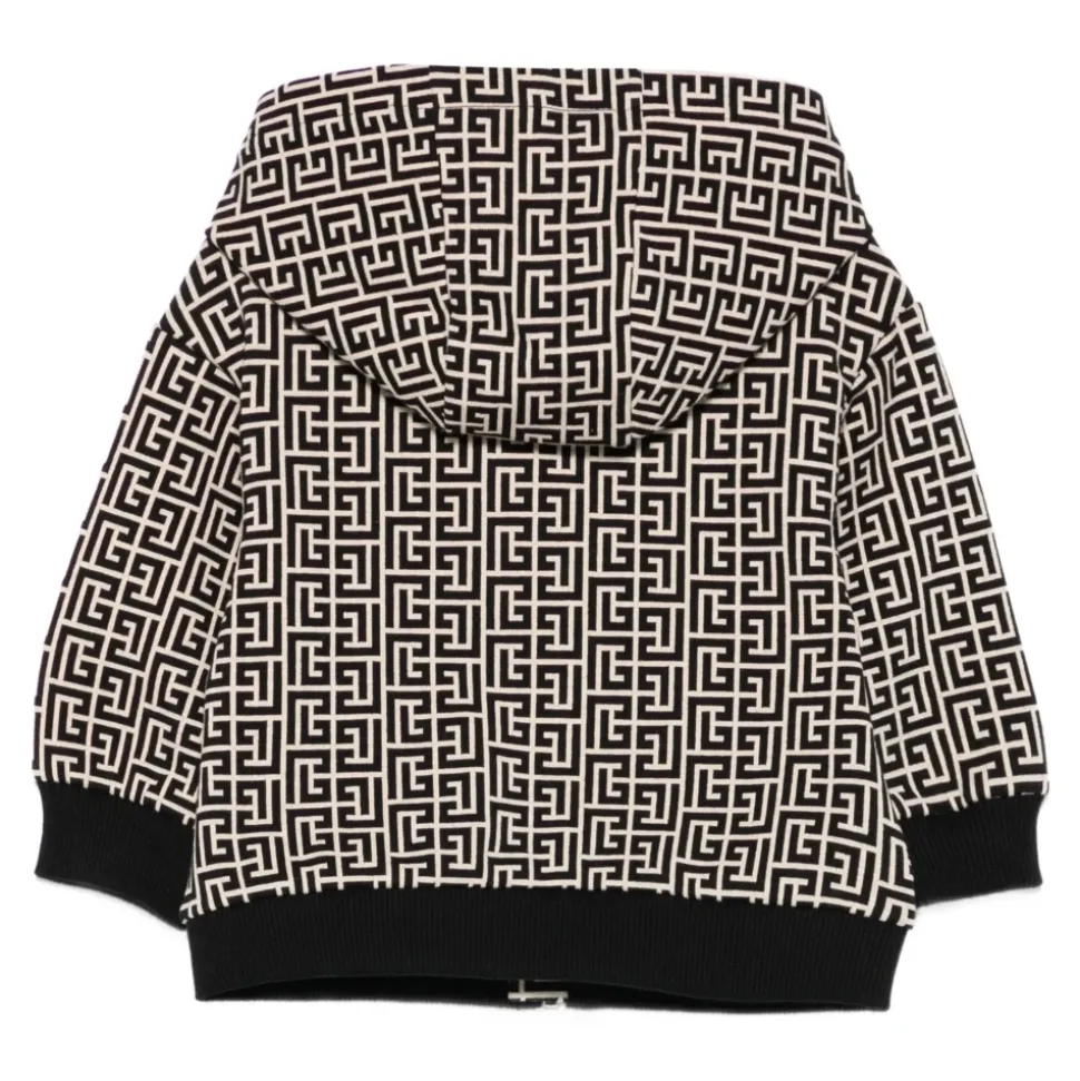 De Balmain Monogram Hoodie is een hooded sweatshirt met ritssluiting aan de voorkant van Balmain, voorzien van een all-over PB monogrammotief. Het is ontworpen voor dagelijks gebruik en gemakkelijke layering. Belangrijkste kenmerken: Multicolor | Crème | Katoen | Ritssluiting | Capuchonhalslijn | All-over monogrammotief | Lange mouwen | Geribbelde manchetten | Geribbelde zoom | Afmetingen & pasvorm: Regular fit | Samenstelling & onderhoud: Buitenkant: 95% katoen, 5% elastaan | Voering: 100% katoen