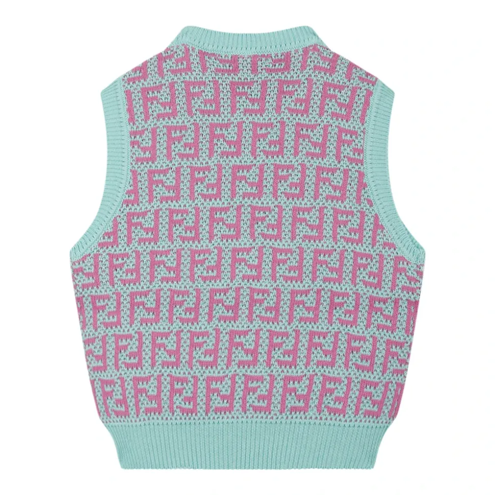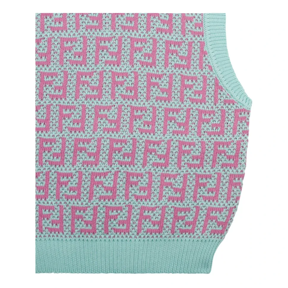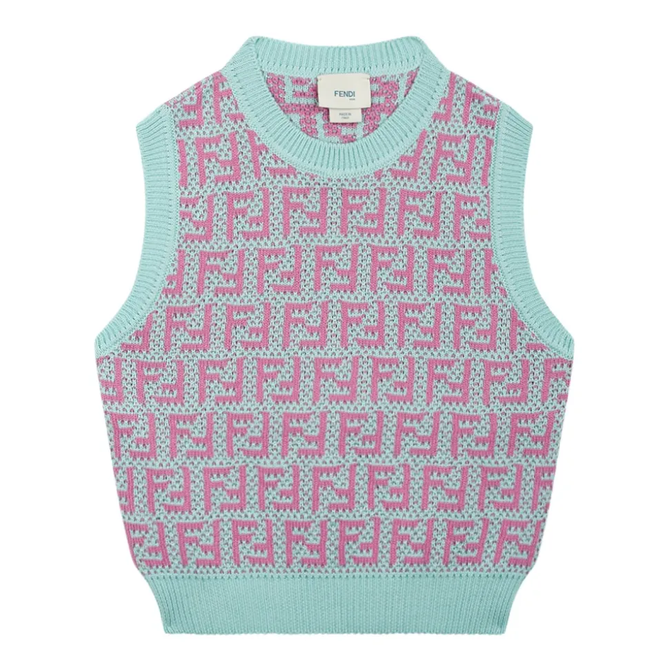 De Fendi Multicolour Top is een cropped gehaakt katoenen item dat opvalt door zijn roze en aquamarijn multicolour patroon en getextureerde afwerking. Draag het los of in laagjes voor een speelse, zomerse look. Belangrijkste kenmerken: Multicolor | Acquamarina | Holliwoo | Katoen | Ronde hals | Mouwloos | Cropped | Rechte zoom | Gehaakte textuur | Multicolour patroon | Afmetingen & pasvorm: Cropped fit | Samenstelling & verzorging: Katoen