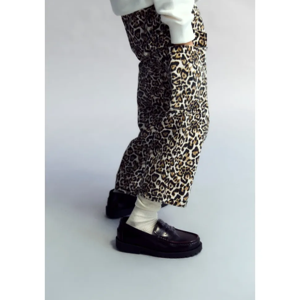 De New Society Nelia Pant is een cargo broek van denim met luipaardprint, gemaakt voor dagelijks gebruik. Het combineert een elastische tailleband met praktische cargozakken voor comfort en gemakkelijke bewegingsvrijheid. Belangrijkste kenmerken: Bruin | Katoen | Elastische tailleband | Cargozakken aan de zijkant | Overal luipaardprint | Denim cargo silhouet | Afmetingen en pasvorm: Model is 118 cm lang en draagt maat 6Y | Samenstelling en onderhoud: 100% BCI Katoen | Machinewas 40°C, niet bleken, strijken op middelhoge temperatuur.