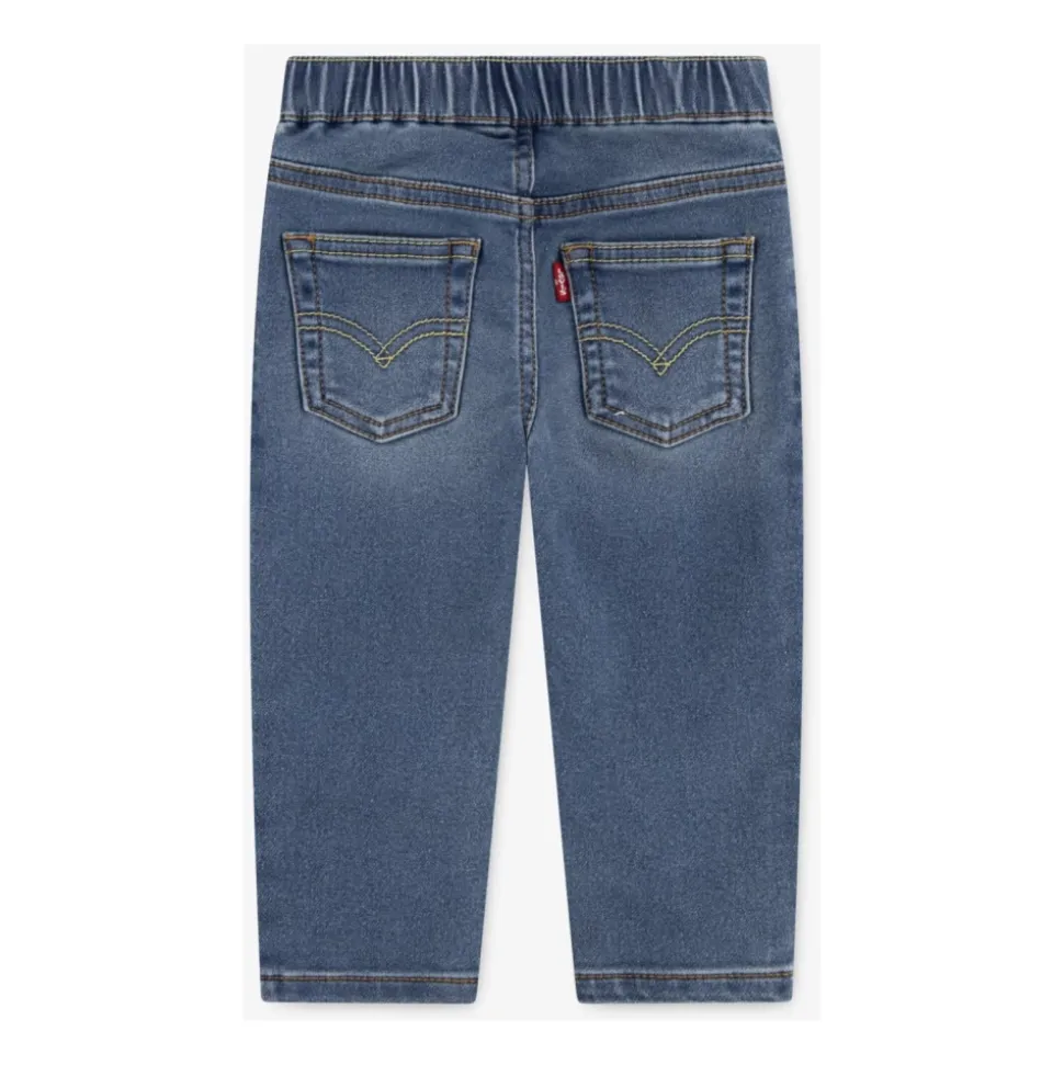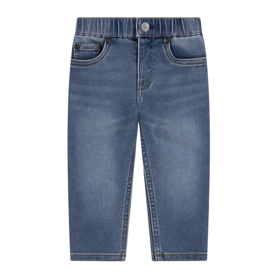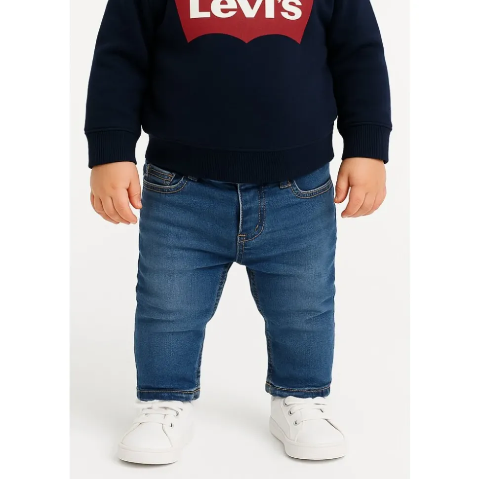 Leverancierscode: 6EN723TARNATION_ Levi’s Slim Dobby Pull On Jeans voor pasgeborenen, een praktisch en comfortabel model dat de Levi’s denim traditie combineert met functionaliteit die ideaal is voor de kleintjes. Gemaakt van 65% katoen, 29% polyester, 4% viscose en 2% elastaan stretchstof, garanderen ze zachtheid, duurzaamheid en goede elasticiteit om dagelijkse bewegingen te begeleiden. Het ontwerp heeft een slim fit met lange pijpen en een elastische tailleband, waardoor het aankleden gemakkelijk en snel gaat zonder afbreuk te doen aan de iconische denimstijl. Klassieke Levi’s details zoals geborduurde achterzakken en het logopatch maken de look compleet. De middelblauwe wassing maakt ze veelzijdig en gemakkelijk te combineren met rompers, t-shirts of sweatshirts. Een praktisch kledingstuk, machinewasbaar op 40°. Pasvorm: Slim fit Lijn: Recht Lengte: Lang Elasticiteit: Medium Samenstelling: 65% katoen, 29% polyester, 4% viscose, 2% elastaan Kleur: Middelblauw denim Details: Elastische tailleband, geborduurde achterzakken, Levi’s logopatch Wassen: Machinewas op 40° Essentieel en praktisch denim, ontworpen voor het comfort van pasgeborenen zonder afbreuk te doen aan de Levi’s stijl.