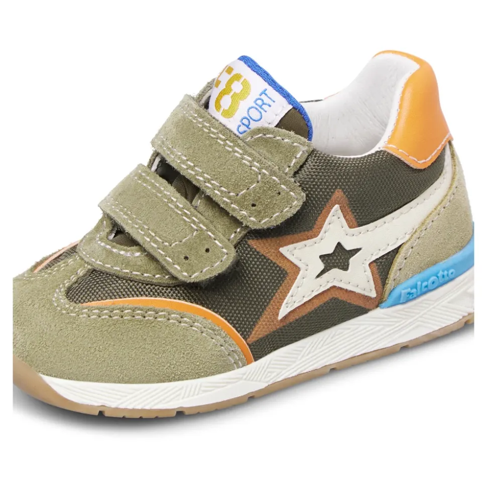 Falcotto New Ferdi 3 High VL. combineert een bovenwerk van suède en stof met een veilige klittenbandsluiting voor gemakkelijk aan- en uittrekken en een rubberen zool voor stabiel dagelijks gebruik. Belangrijkste kenmerken: Legergroen | Oranje | Suède en stof | Ademende leren binnenzool en voering | Stabiele rubberen zool | Lichtgewicht constructie | Klittenbandsluiting | Bovenwerk van suède en stof | Contrasterende oranje accenten | Samenstelling & onderhoud: Suède (bovenwerk) | Stof (bovenwerk) | Leer (binnenzool) | Leer (voering) | Rubber (zool)