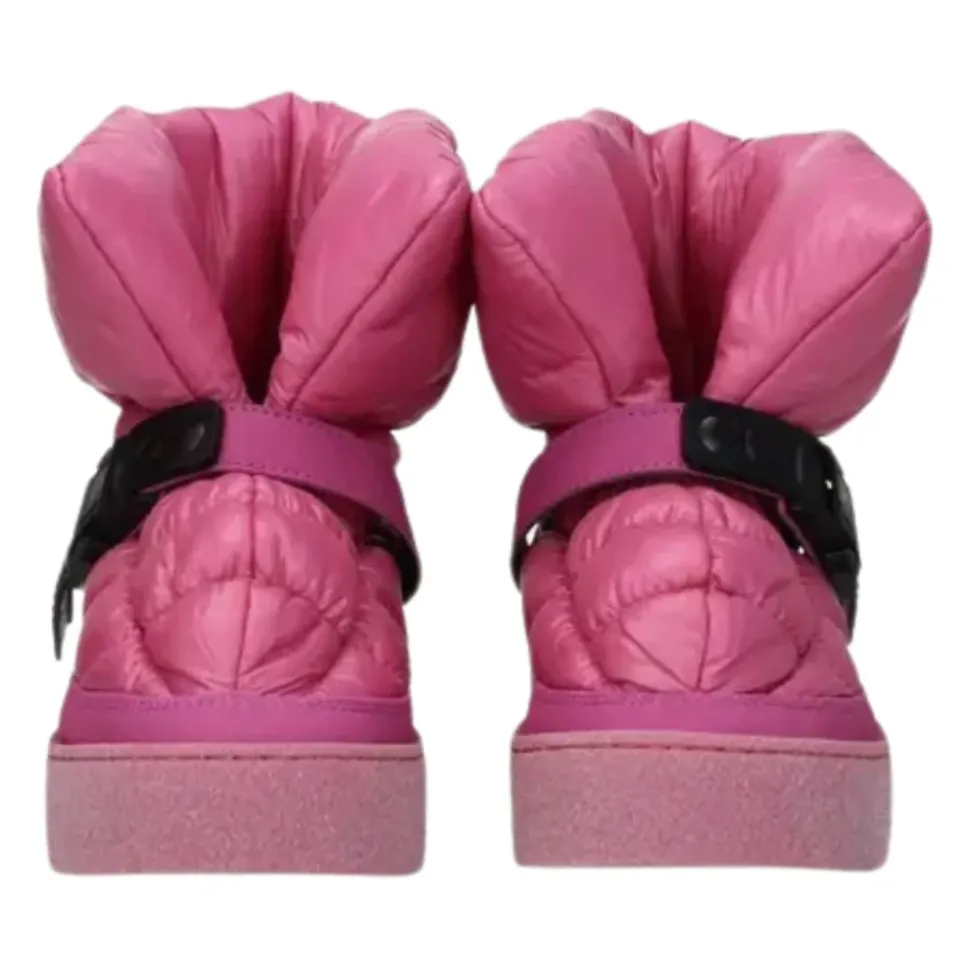 Khrisjoy presenteert de Nylon Gewatteerde Platte Schoenen, ontworpen voor besneeuwde avonturen met een stijlvolle twist. Deze laarzen combineren functionaliteit en mode, en zorgen voor warmte en comfort. Belangrijkste kenmerken: Roze | Glanzend technisch materiaal | Verstelbare gespsluiting | Ronde neus | Sherpa voering | Logo gedrukt op de achterkant | Samenstelling en onderhoud: 100% polyamide