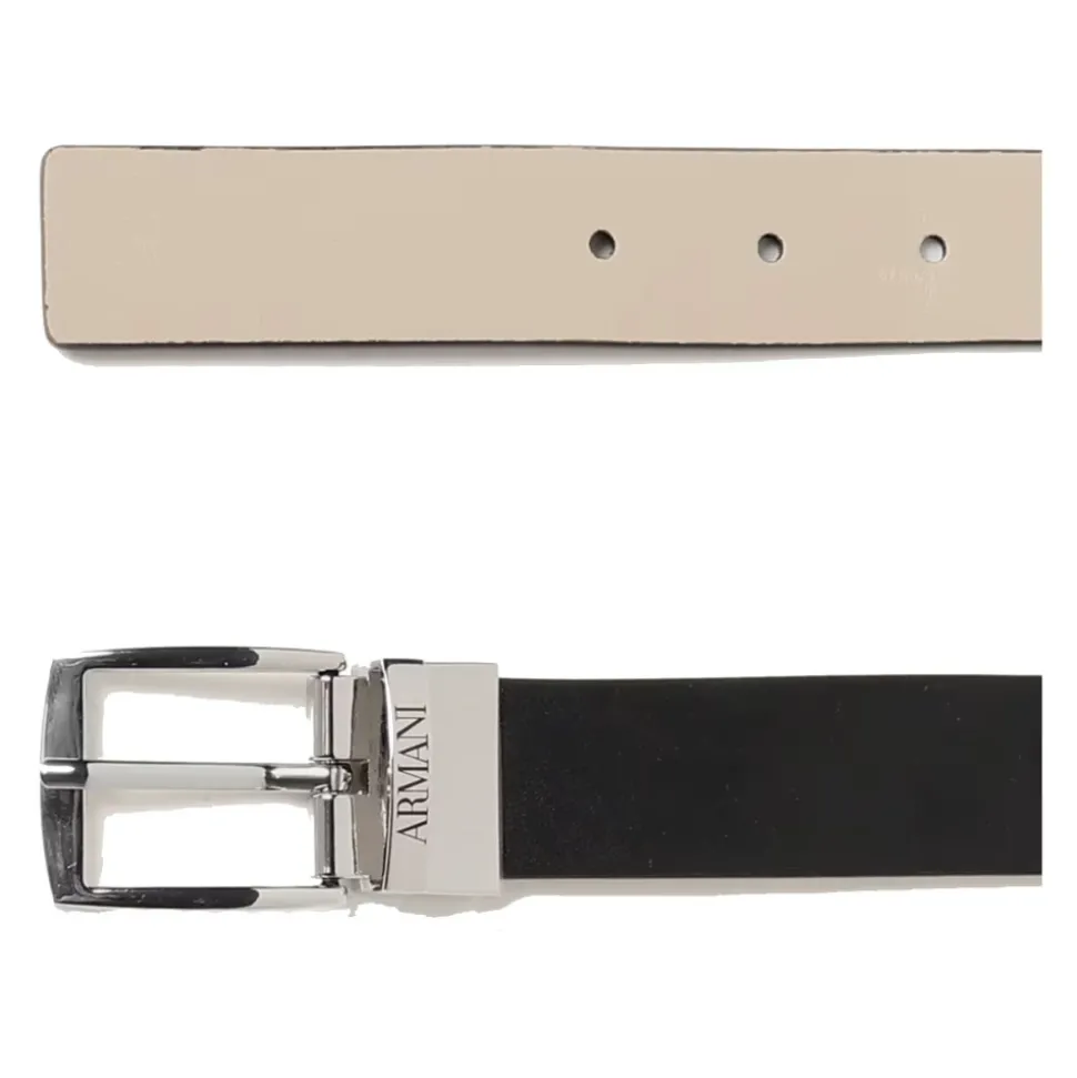 De Armani omkeerbare riem met logo-gesp biedt twee looks in één dankzij het omkeerbare, tweekleurige ontwerp en de logo-gegraveerde gesp. Verfijnde afwerking en een glad, zacht oppervlak maken hem geschikt voor zowel dagelijkse als geklede styling. Belangrijkste kenmerken: Zwart | Nero | Polyester | PU-gecoat oppervlak | Elegante, gladde afwerking | Omkeerbaar ontwerp | Logo-gegraveerde gesp | Verstelbare pasvorm | Tweekleurig omkeerbaar ontwerp | Glad oppervlak | Verfijnde afwerking en details | Zacht gevoel | Afmetingen en pasvorm: Verstelbare pasvorm | Samenstelling en verzorging: 100% Polyester | Volg de wasvoorschriften op het binnenlabel.