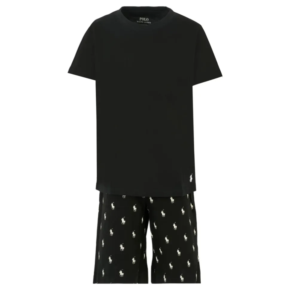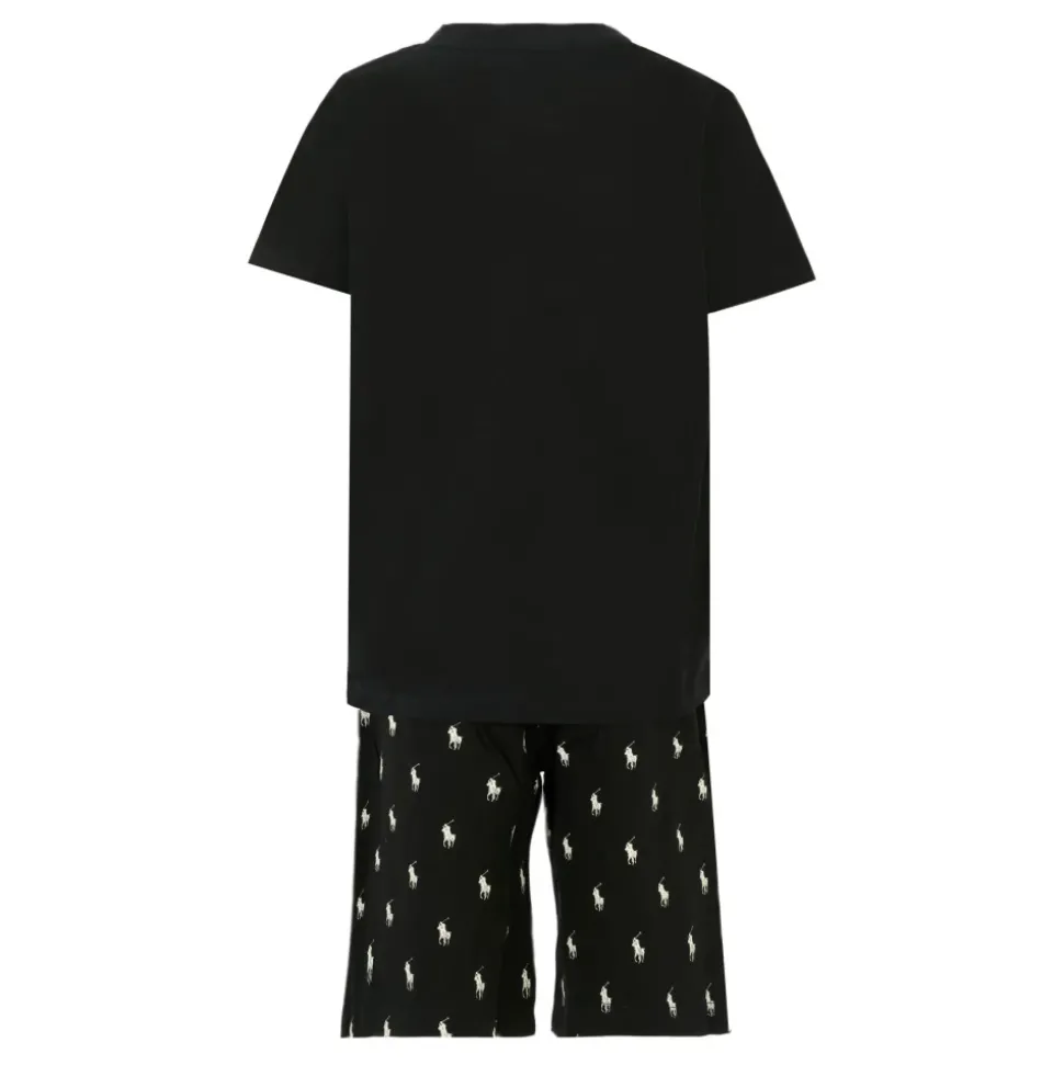 Kleur: ZwartBeschrijving: Zwarte katoenen pyjama bestaande uit een T-shirt en shorts. De T-shirt heeft korte mouwen en een geribbelde ronde hals; Hij is versierd met het iconische witte paard geborduurd op de voorkant. De shorts hebben een elastische taille en trekkoord; ze zijn versierd met een all-over paardenprint.Details: 100% katoen. Machinewas op 30°C.