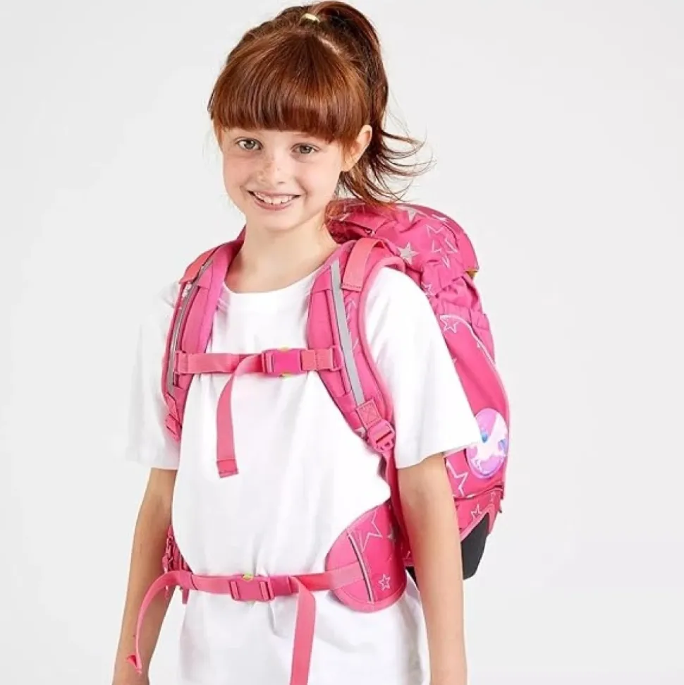 Ergobag Pack Set Zaino STARLIGHTBEAR is een complete, schoolklare set, gebouwd rond een ergonomische, in hoogte verstelbare rugzak. De set valt op door zijn verstelbare “Your-Size-System” en gemakkelijke magnetische sluiting voor snelle toegang. Belangrijkste kenmerken: Roze | Fucsia | PET | Waterafstotend | Vuilafstotend | Reflecterende prints en reflectoren voor betere zichtbaarheid aan alle kanten | In hoogte verstelbaar “Your-Size-System” | Brede, gewatteerde heupflappen voor verbeterde ondersteuning | Magnetische sluiting voor eenvoudig openen/sluiten | Ring voor het bevestigen van Hangies | Aanpasbaar met Kletties en Hangies | Starlightbear motief | Aanpasbare voorkant met Kletties en Hangies | Inclusief bijpassende sporttas en meerdere etuis | Afmetingen & pasvorm: Afmetingen: 28 x 40 x 28 cm (L/B/H) | Volume: 20 L | Gewicht: 1100 g | Inhoud verpakking: rugzak + sporttas + harde etui + etui + map + Kletties | Verstelbare rughoogte via “Your-Size-System” | Goede ondersteuning en pasvorm dankzij brede, gewatteerde heupflappen | Samenstelling & onderhoud: PET