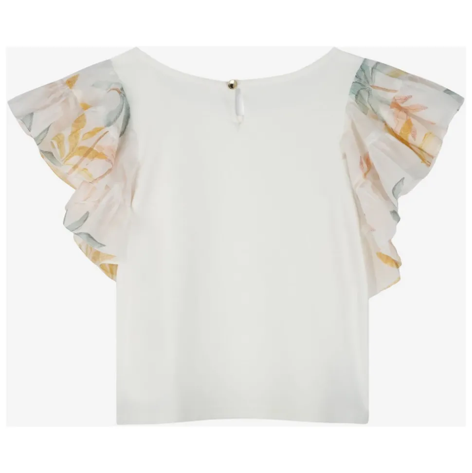 Verrijk je garderobe met de Chloé Palm Grove Ruffle Top in ivoor, met verfijnde ruches en een luxueuze tint, perfect voor speciale gelegenheden en alledaagse chic. Belangrijkste kenmerken: Ivoor | Beige | Beige | Ruches |