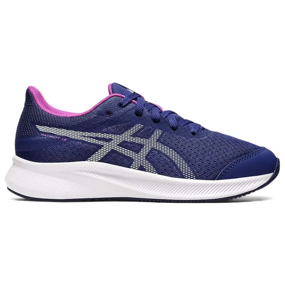 De ASICS Patriot 13 GS sneakers combineren een ademend bovenwerk van mesh met responsieve EVA-demping voor lichtgewicht comfort tijdens het hardlopen en dagelijkse activiteiten. Belangrijkste kenmerken: Dive blue | Soft sky | Mesh | EVA-middenzool demping | Ademend bovenwerk van mesh | Rubberen buitenzool voor grip | Vetersluiting | Textielvoering | Laag model | Textiel bovenwerk met synthetische overlays | Verstevigde hielkap | Samenstelling & onderhoud: Mesh (bovenwerk) | EVA (middenzool) | Rubber (buitenzool) | Textiel (voering) | Synthetische overlays