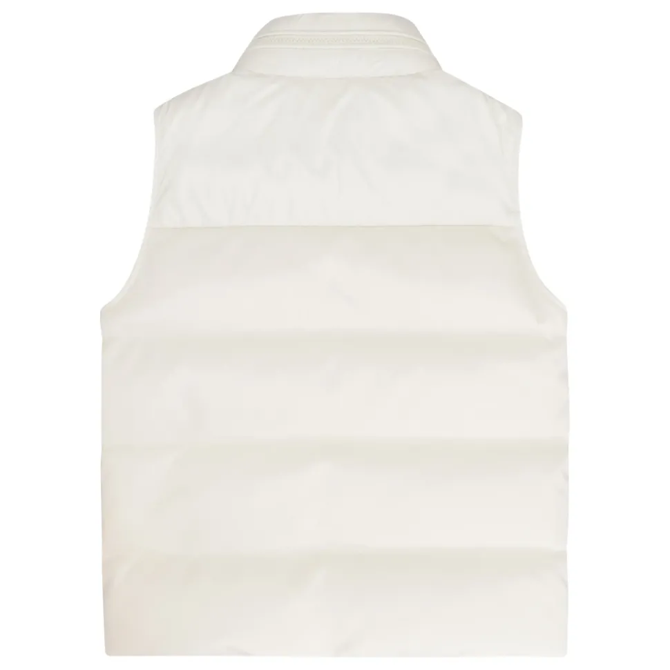 De Moncler Peter Bodywarmer Jacket is een donsgevoerde, mouwloze laag, ontworpen voor lichtgewicht warmte en gemakkelijke styling. Het stuk valt op door een contrasterend kleurenlogo voor een strakke, herkenbare afwerking. Belangrijkste kenmerken: Wit | Polyester | Isolerende donsvulling | Lichtgewicht constructie | Mouwloos ontwerp voor gemakkelijke laagjes | Contrasterend kleurenlogo | Mouwloos silhouet | Samenstelling & onderhoud: Vulling: 90% dons, 10% veren | Buitenlaag: 100% Polyester