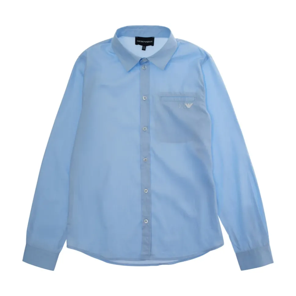 Emporio Armani Poplin Overhemd met Logo Borduursel is een lichtblauw katoenen overhemd met een klassieke kraag en subtiel logo borduursel aan de voorkant. Het is geschikt voor zowel smart-casual looks als gekledere alledaagse outfits. Belangrijkste kenmerken: Lichtblauw | Katoen | Klassieke kraag | Geborduurd logo op de voorkant | Poplin stof | Samenstelling & onderhoud: Katoen