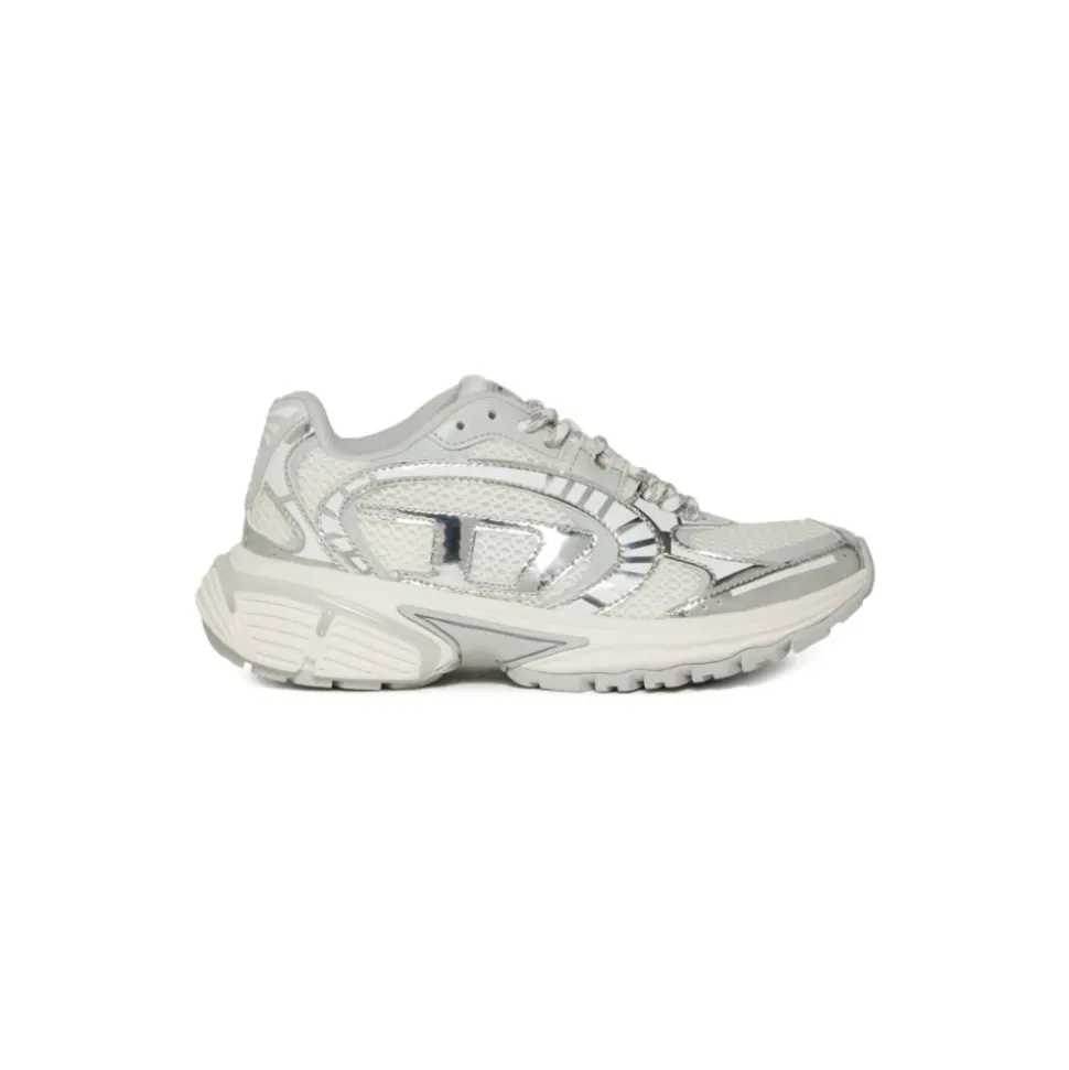 Diesel Pro V Dense Sneakers combineren een sportief bovenwerk van mesh met een ondersteunende rubberen zool voor comfort en dagelijks gebruik. De metallic logo-accenten en constructie maken ze een praktische keuze voor actief gebruik. Belangrijkste kenmerken: Zilver | Wit | Polyester en polyamide | Gedempte rubberen zool | Ademend bovenwerk van mesh | rubberen buitenzool | Vetersluiting | Metallic logo-accenten | Tweekleurige details | Bovenwerk van mesh | Afmetingen & pasvorm: Hakhoogte: 4,5 cm | Samenstelling & verzorging: Bovenkant: 75% polyester, 25% polyamide | Voering: 100% polyester | Buitenzool: 100% rubber | Reinigen met een zachte, droge doek. Niet in de wasmachine wassen. Vermijd het dragen in hevige regen.