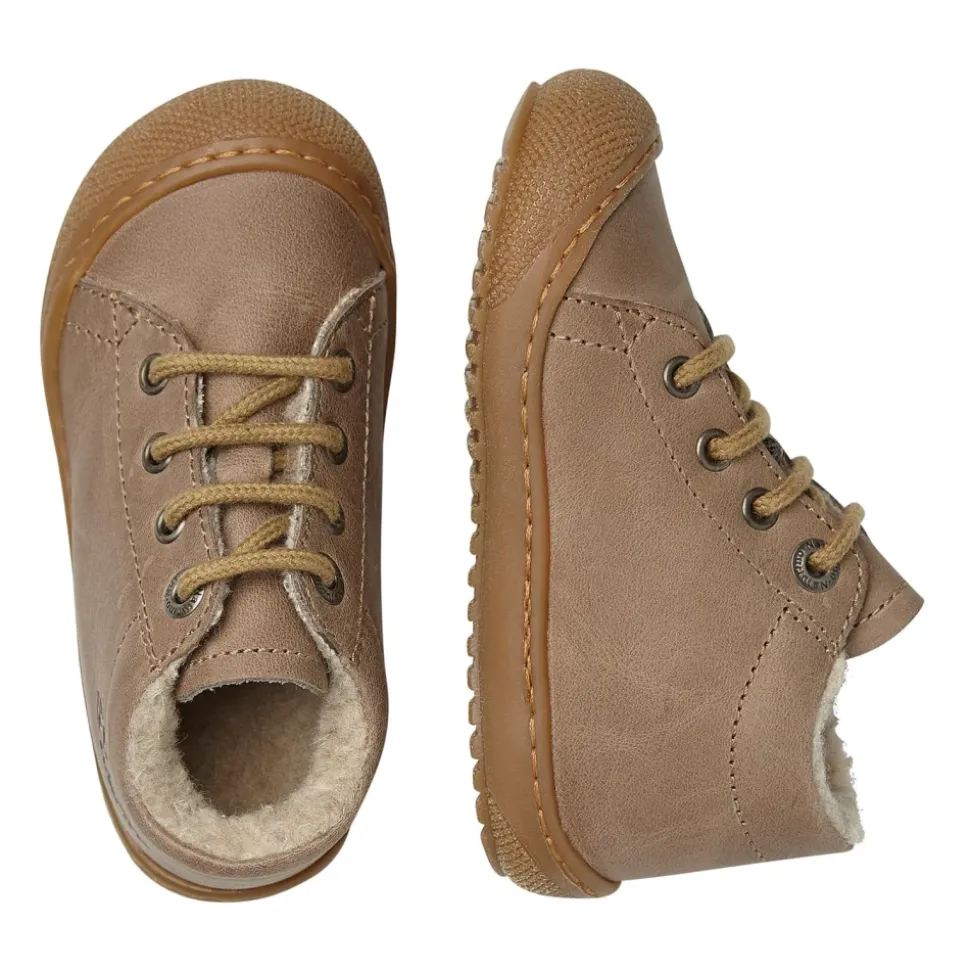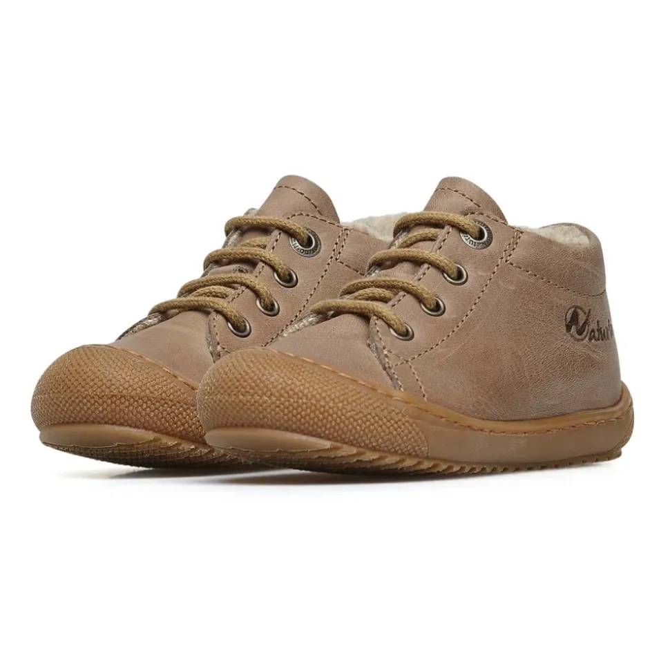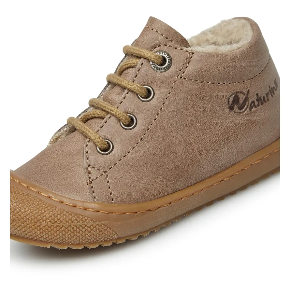 Naturino Racoon is een schoen van gewaxt kalfsleer met een wollen voering, ontworpen om warmte en stabiele ondersteuning te bieden voor dagelijks wandelen en actief spelen. Hij combineert een antislip rubberen buitenzool met een versterkte teen en een gestructureerde hiel voor duurzaamheid en stevige stappen. Belangrijkste kenmerken: Bruin | Lichtbruin | Gewaxt kalfsleer | Wollen voering voor warmte | Antislip rubberen buitenzool | Vetersluiting | Versterkte teen | Gestructureerde hiel | Gewaxte afwerking | Verstevigde neus | Samenstelling & onderhoud: Gewaxt kalfsleer (leer) | Wol (voering/inlegzool) | Rubber (buitenzool)