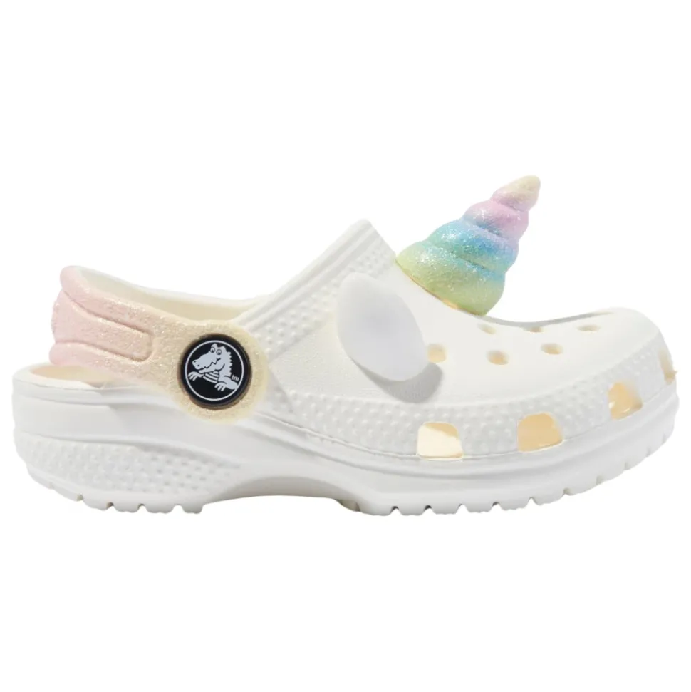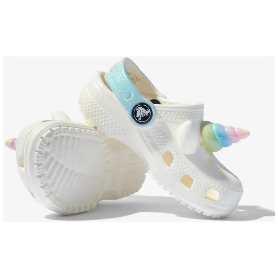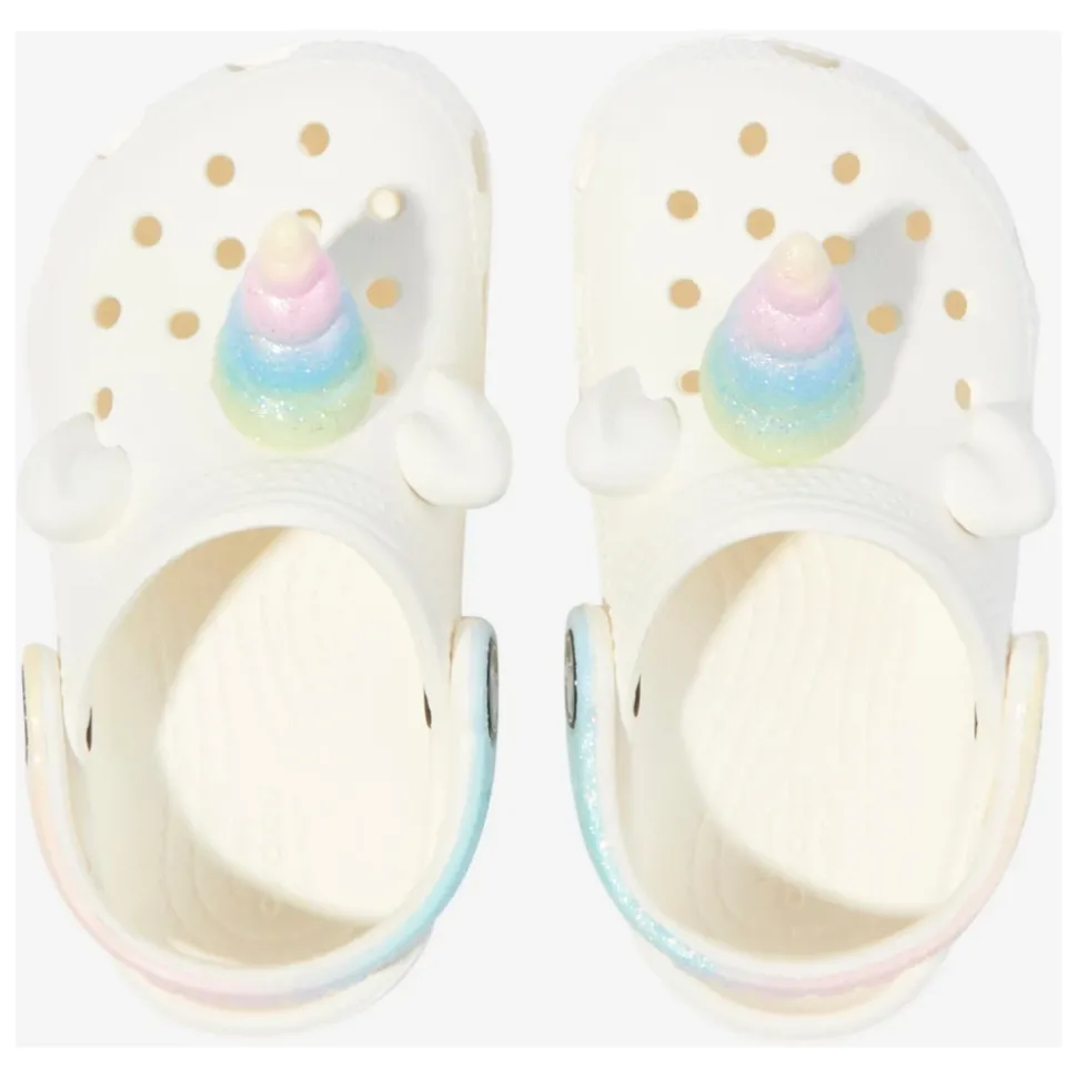 Maak kennis met de Girls Classic I Am Rainbow Unicorn Clog in het wit van Crocs. Dit vooruitstrevende, opvallende schoeisel is een must-have voor de SS2024-garderobecollectie van je meisje:•Exquise ontwerp: Versierd met een betoverende Rainbow Unicorn-print die smaakvol is verwerkt, waarbij stijl en vreugde samensmelten.•Pure comfort: Vervaardigd tot in de perfectie van hoogwaardige materialen, zorgt voor soepel comfort en duurzaamheid voor de frequente avonturen van je meisje.•Directe upgrade: Deze stijlvolle en unieke klomp in het wit zorgt voor een directe, fantastische upgrade van de schoenencollectie van je meisje. Laat je kleine modefanaat bloeien in stijl en comfort met de Girls Classic I Am Rainbow Unicorn Clog van Crocs!