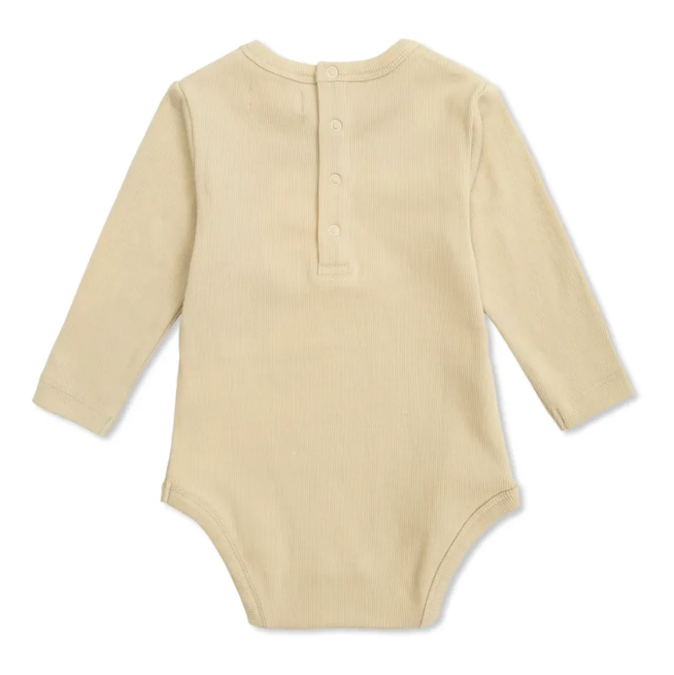 De Tinycottons Rib Bodysuit combineert een zachte geribbelde katoenen brei met praktische drukknoopsluitingen voor gemakkelijk verschonen. Het strakke silhouet en de speelse printdetails maken het een veelzijdige, alledaagse laag. Belangrijkste kenmerken: Beige | Katoen | Zacht aanvoelend | Elastisch ribbreisel voor bewegingsvrijheid | Drukknoopsluitingen in het kruis | Drukknoopsluiting op de rug voor gemakkelijk aankleden | Ronde halslijn | Lange mouwen | Geribbelde afwerking | Sferisch gedrukt motief met “TINY” inscriptie | Minimalistisch, klassiek silhouet | Afmetingen & pasvorm: Klassieke snit