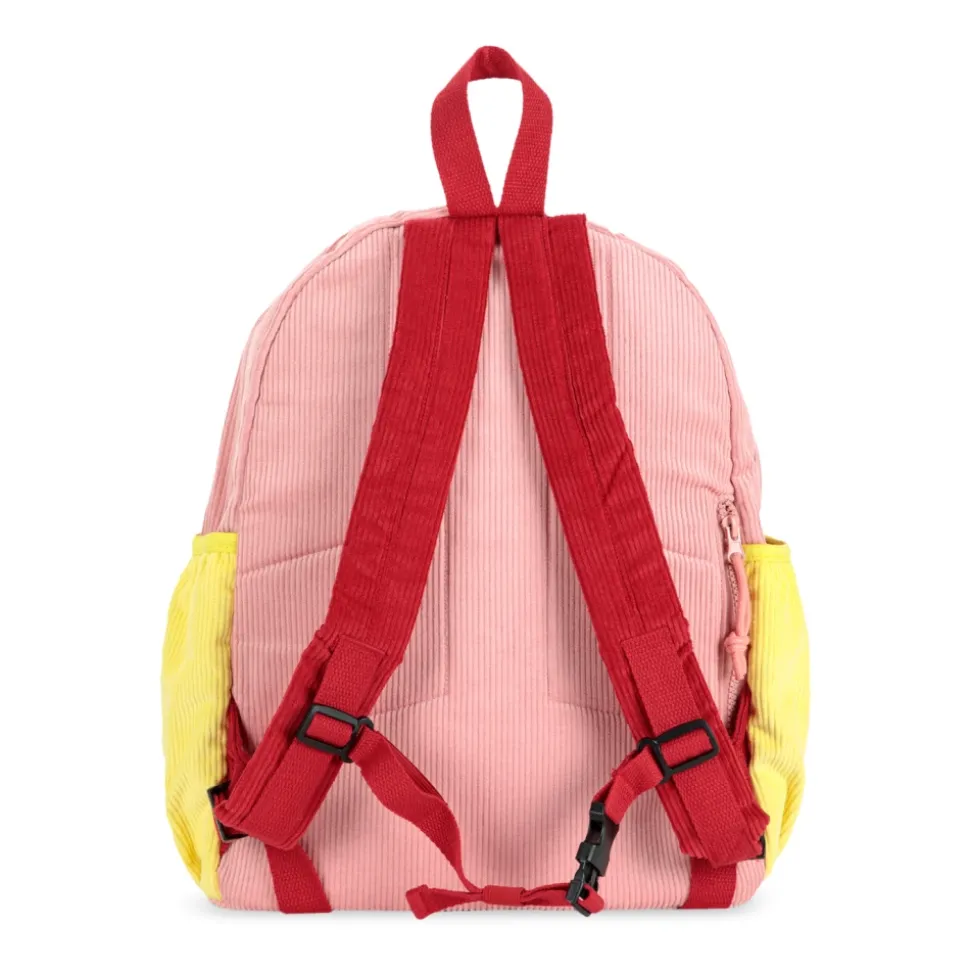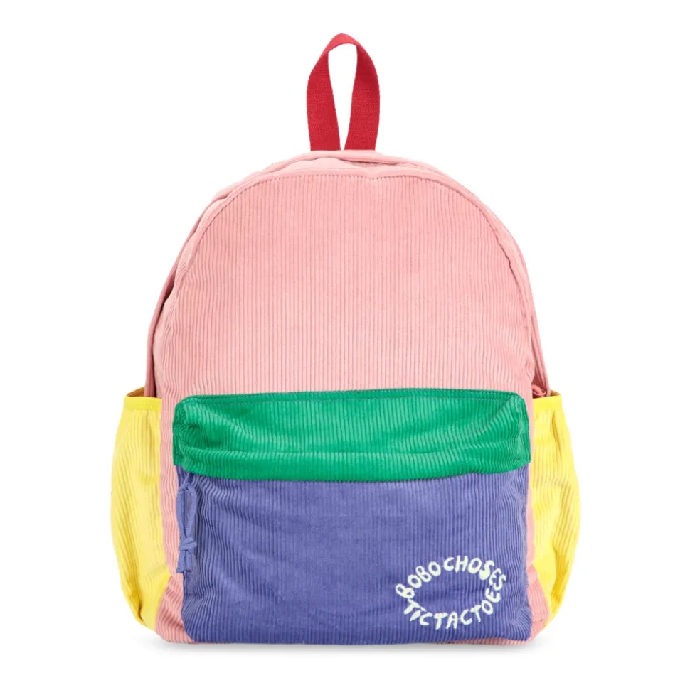 CORDUROY RUGZAK MET GEBORDUURD LOGO van Bobo Choses is een uiting van subtiele extravagantie en een vrolijke benadering van kindermode. Gemaakt van delicaat, fluweelzacht ribfluweel, verrukt het de tastzin en intrigeert de zintuigen. De klassieke, ronde vorm combineert perfect functionaliteit met originele esthetiek – het ruime hoofdcompartiment en externe zak zorgen ervoor dat elk snuisterijtje zijn plek vindt. Een levendige mozaïek van pasteltinten en intense kleuren – van poederroze tot levendige geel en rood – creëert een waar visueel feest, dat de verbeelding stimuleert. De geborduurde witte inscriptie “BOBO CHOSES TICTACTOES” op de paarse zak is een verfijnd detail dat de unieke karakter van het product en de exclusiviteit van het merk benadrukt. Milieuzorg komt tot uiting in het gebruik van materialen. WAAROM DIT PRODUCT KIEZEN? * Uitzonderlijke, fluweelzachte ribfluweel textuur. * Originele, veelkleurige samenstelling. * Zichtbaar, zorgvuldig geborduurd merklogo. * Gemaakt van materialen. * Functionele indeling van zakken en compartimenten. Hoogte: 38 cm Breedte: 28 cm