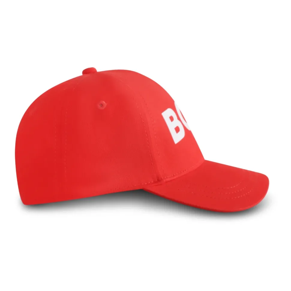 Voeg een vleugje kleur toe aan de outfit van je kleintje met deze rode katoenen pet van Hugo. Met klep, verstelbare band aan de achterkant en wit logo aan de voorkant is deze pet zowel stijlvol als praktisch. Gemaakt van 100% katoen, eenvoudig te onderhouden met machinewas op 30°C.