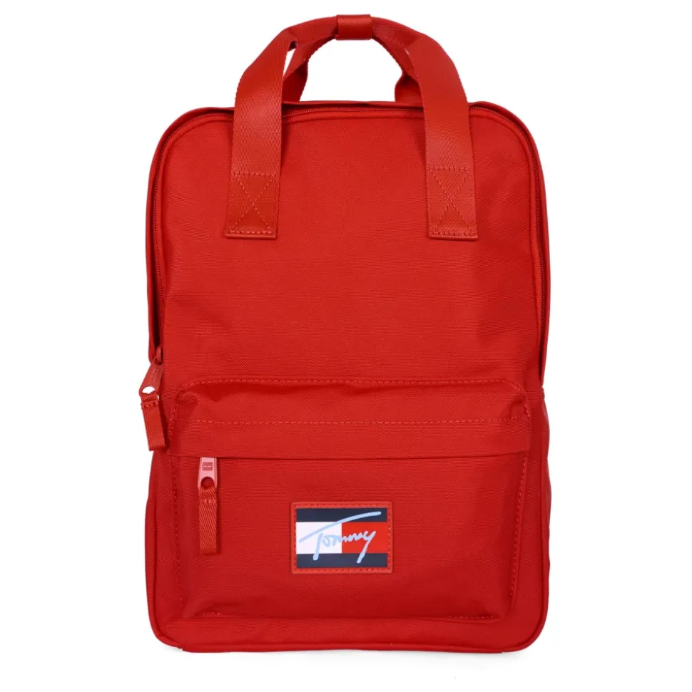 Maak je kleintje klaar voor school met deze stijlvolle rode stoffen rugzak van Tommy Hilfiger. Voorzien van verstelbare schouderbanden, handvatten aan de bovenkant, een voorvak met rits en ritssluiting aan de bovenkant. Versierd met een logopatch op de voorkant. Afmetingen: 30cm x 35cm x 10cm. Gemaakt van 95% polyester en 5% andere vezels.